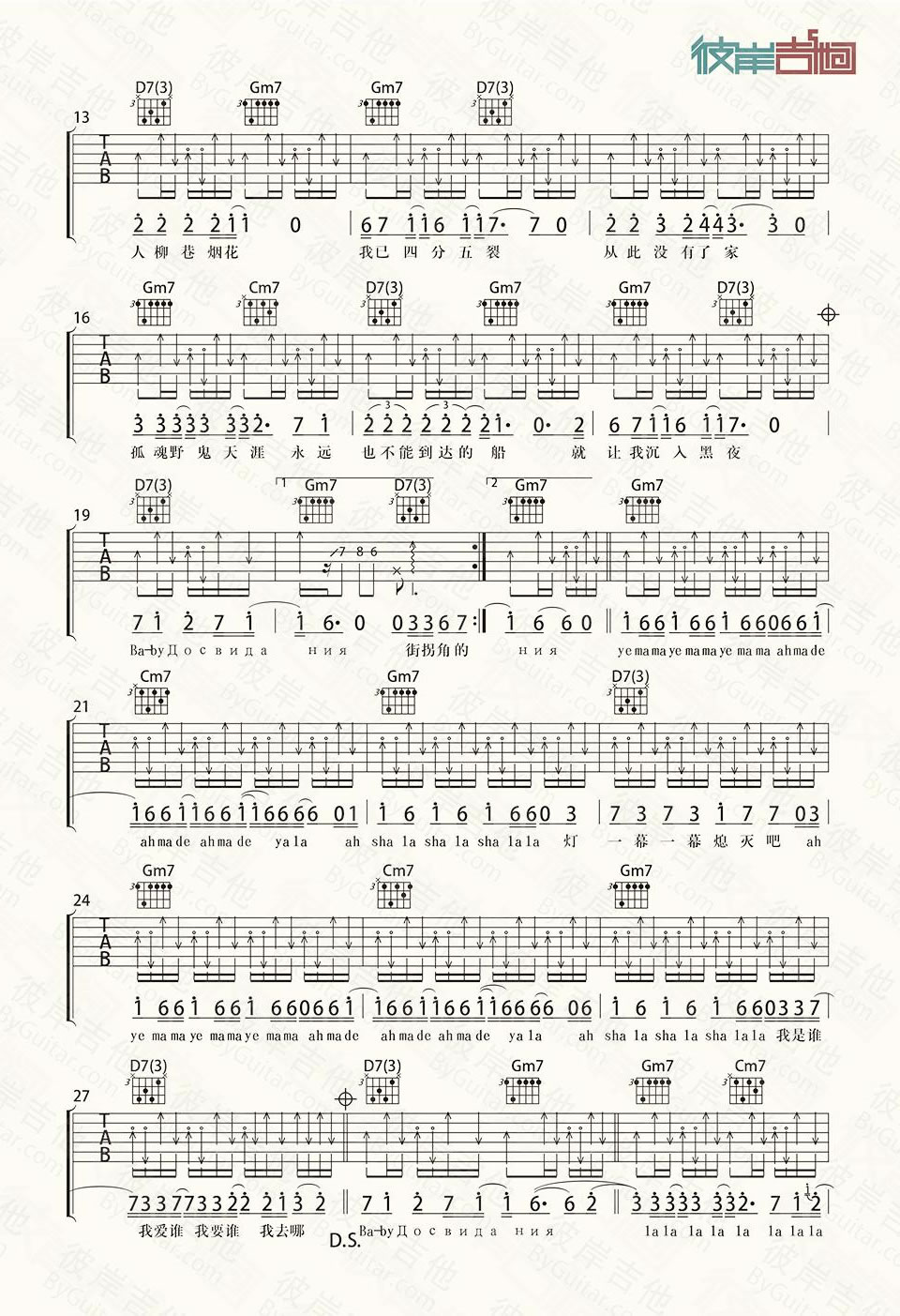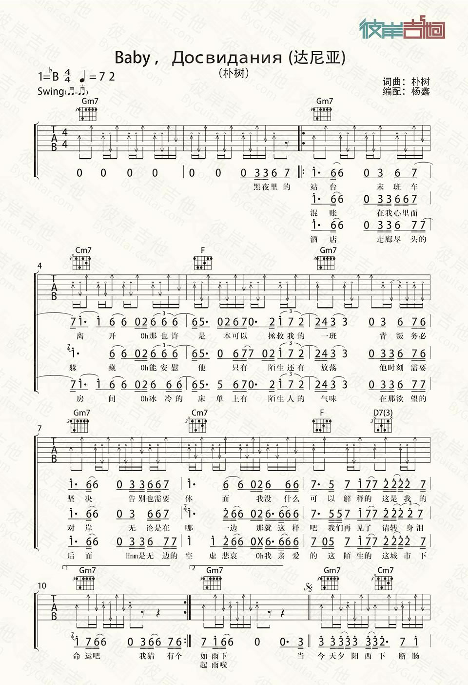 曲谱介绍: 朴树《达尼亚》吉他弹唱谱,共有3张高清图谱。