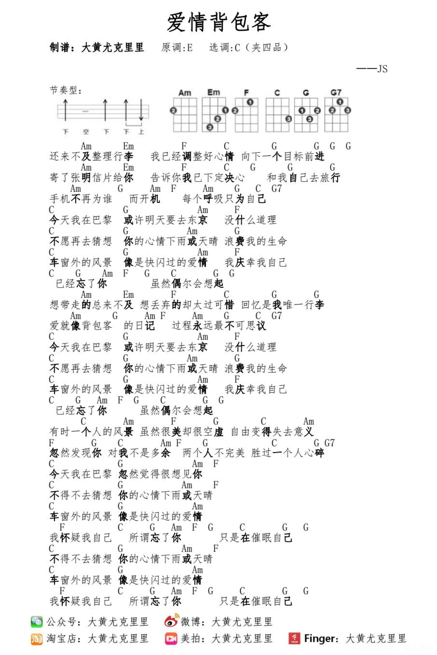 曲谱介绍: 《爱情背包客》尤克里里谱