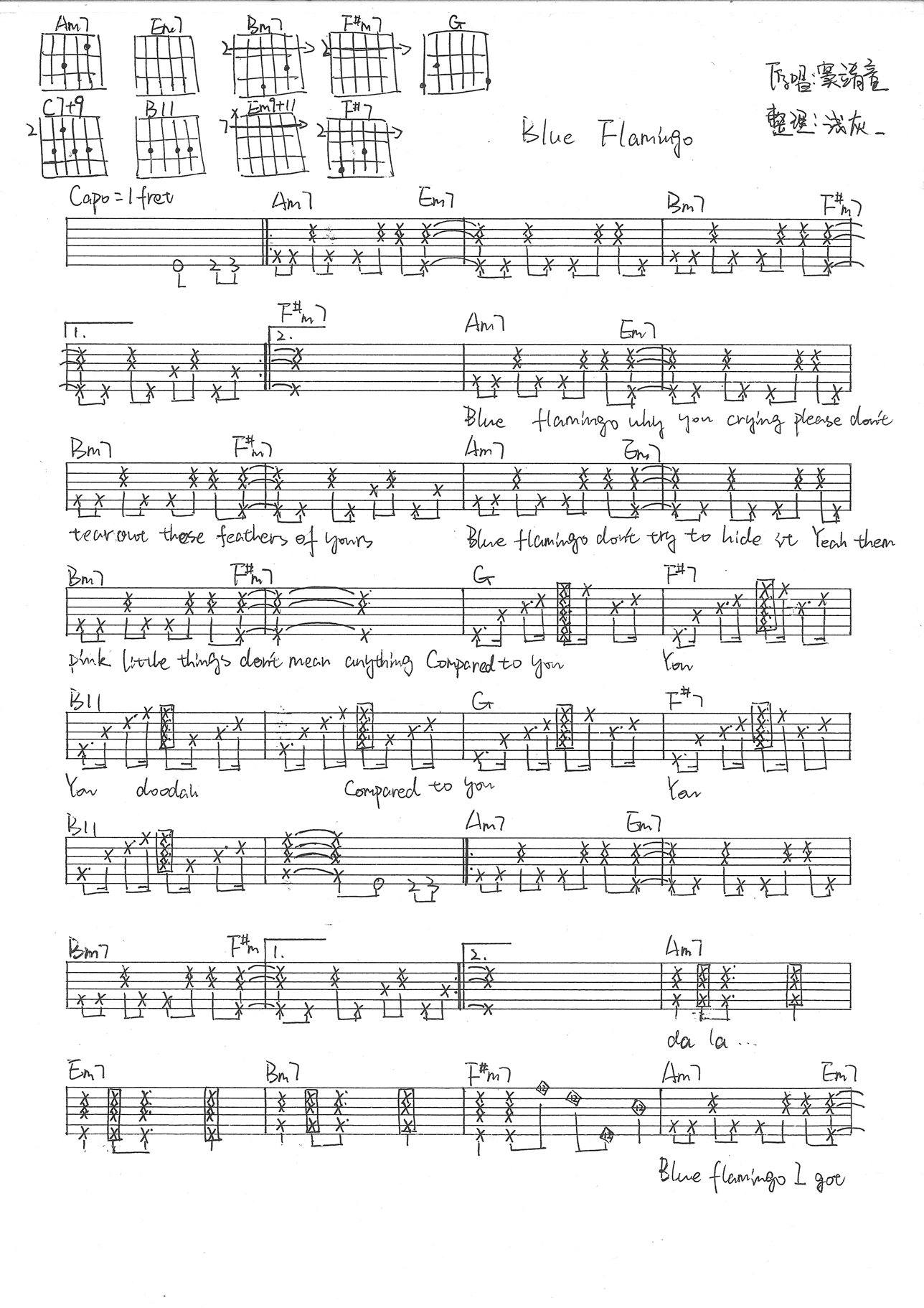Blue Flamingo吉他谱 - 窦靖童 - 吉他弹唱谱 - 原版