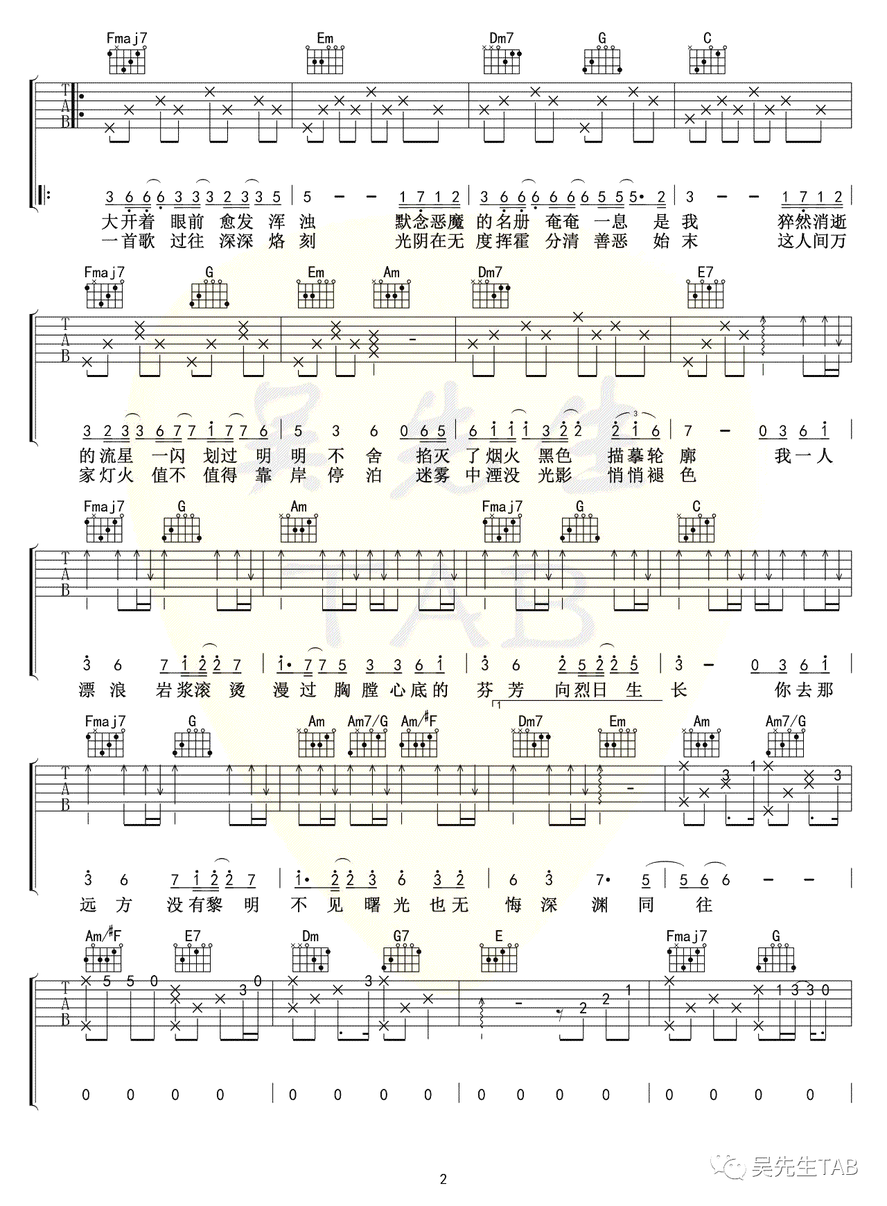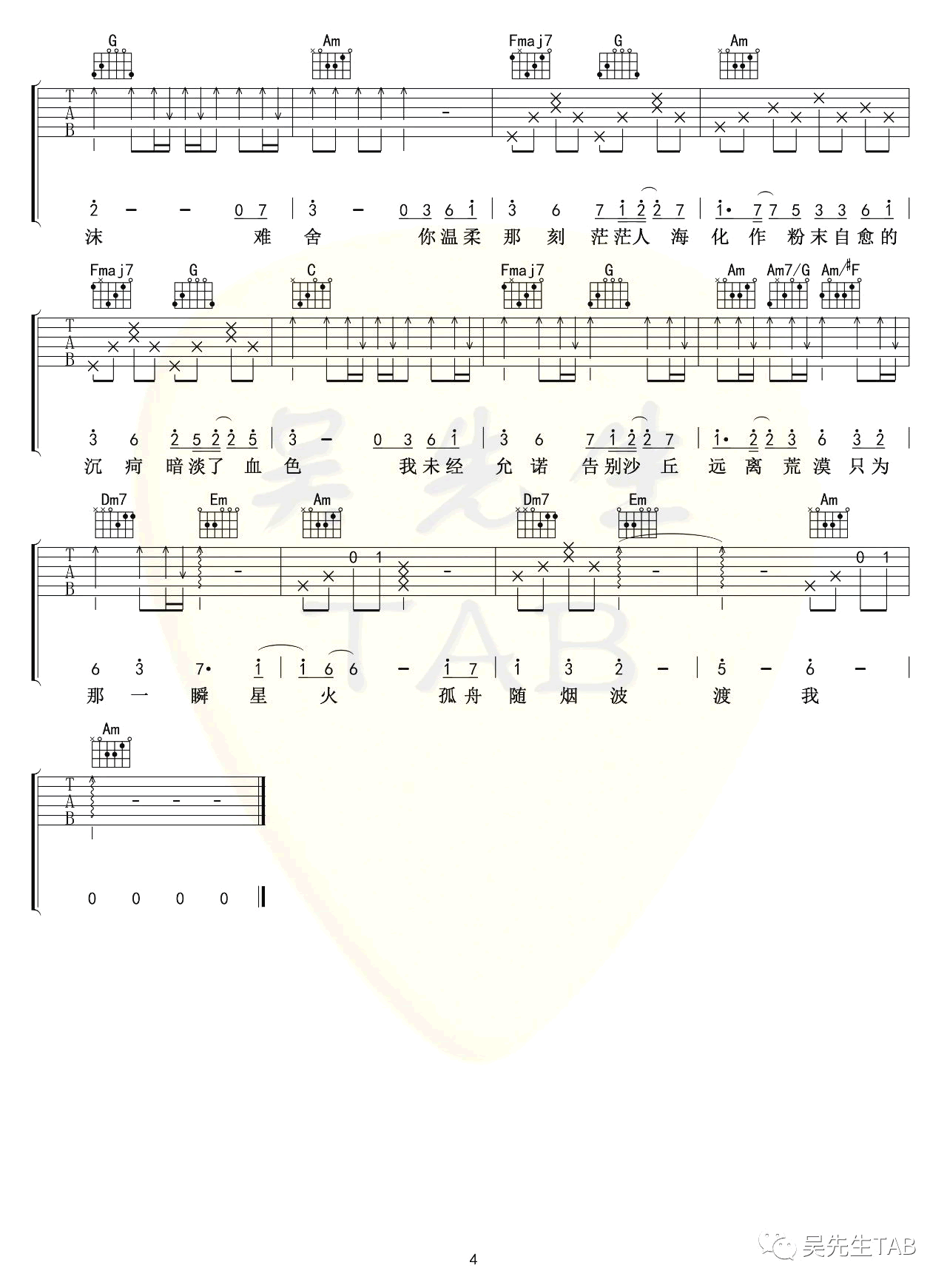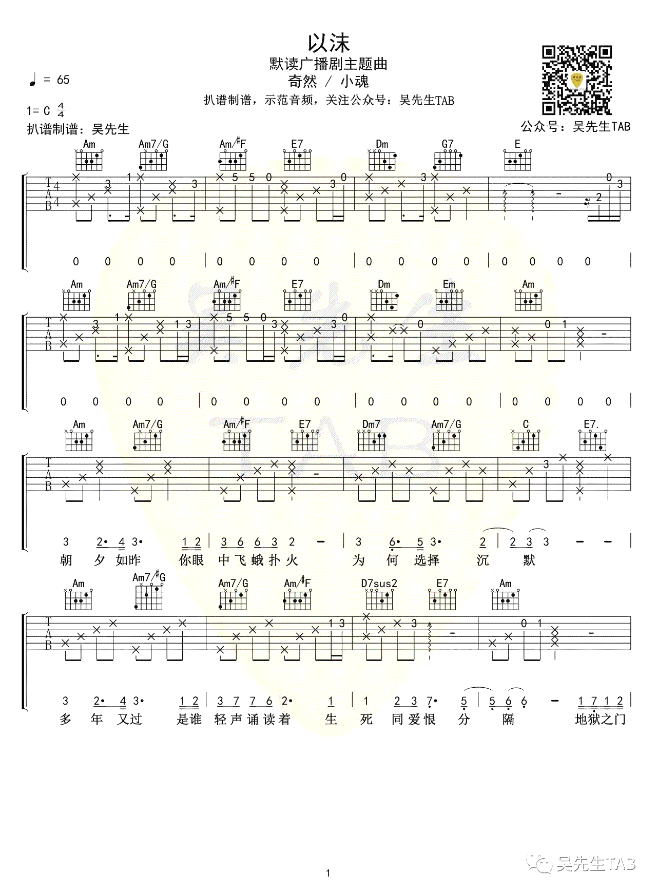 曲谱介绍: 奇然/小魂《以沫》吉他弹唱谱,采用C调指法编配原版,共有4张高清图谱。