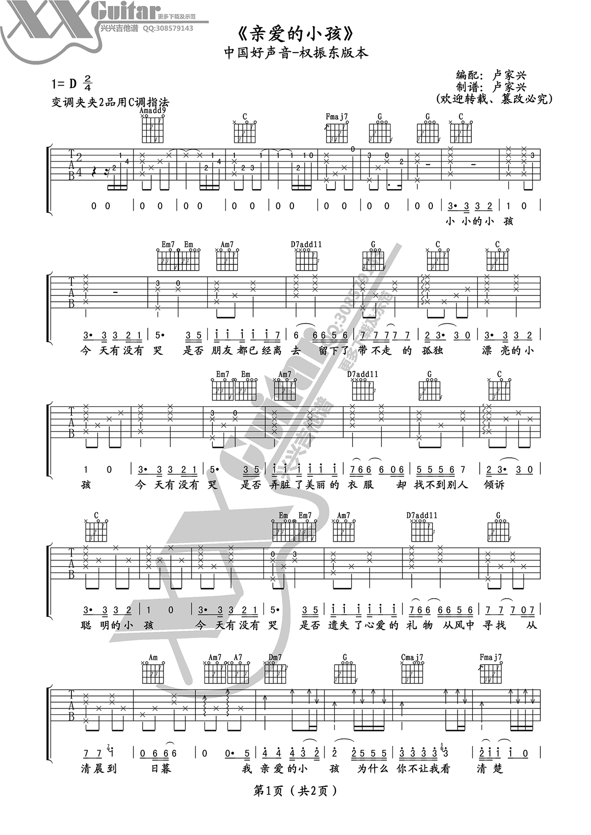 曲谱介绍: 权振东《亲爱的小孩》吉他弹唱谱,采用C调指法编配原版,共有2张高清图谱,免翻页排版设计。