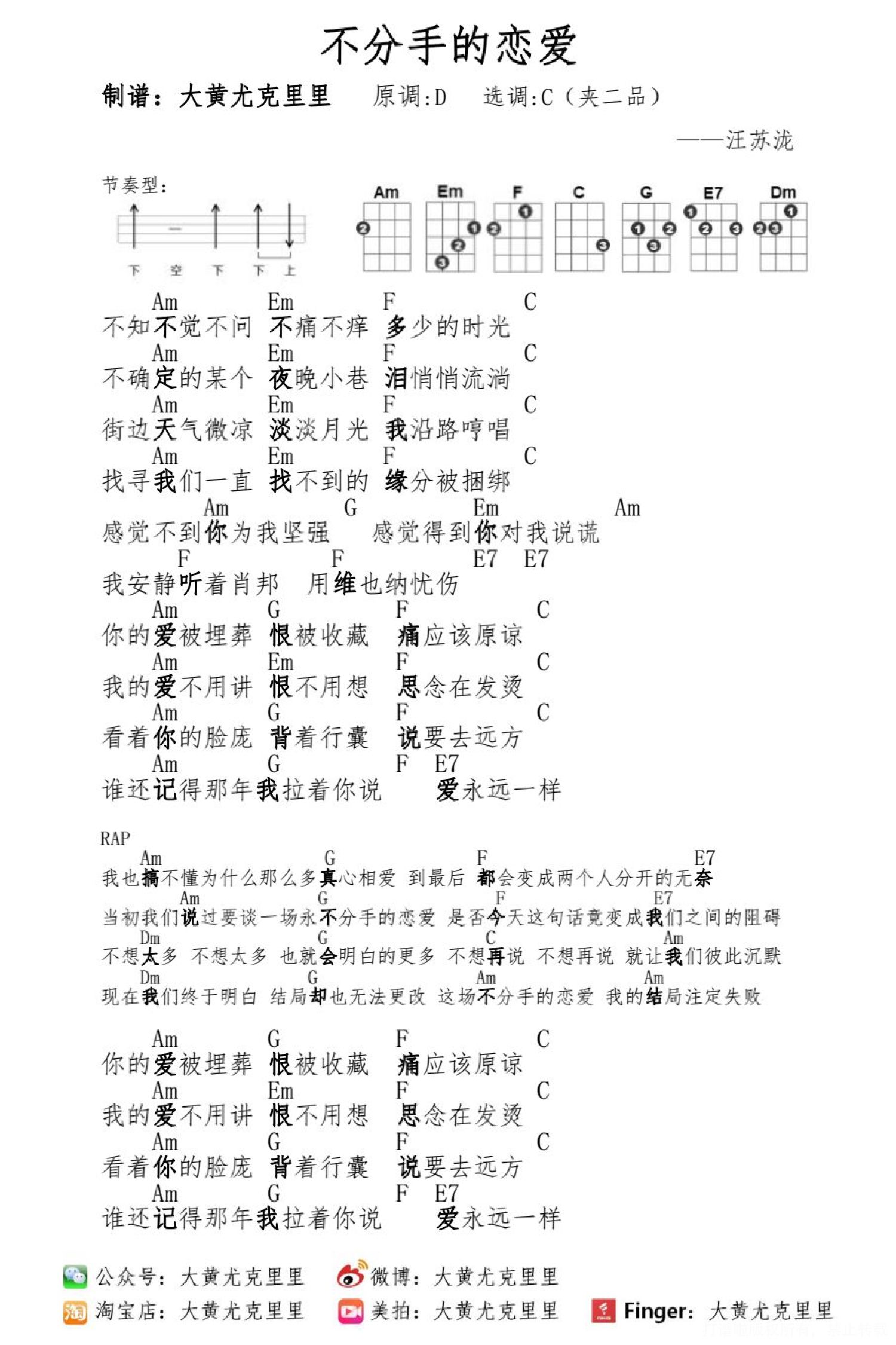 不分手的恋爱尤克里里谱 - 汪苏泷