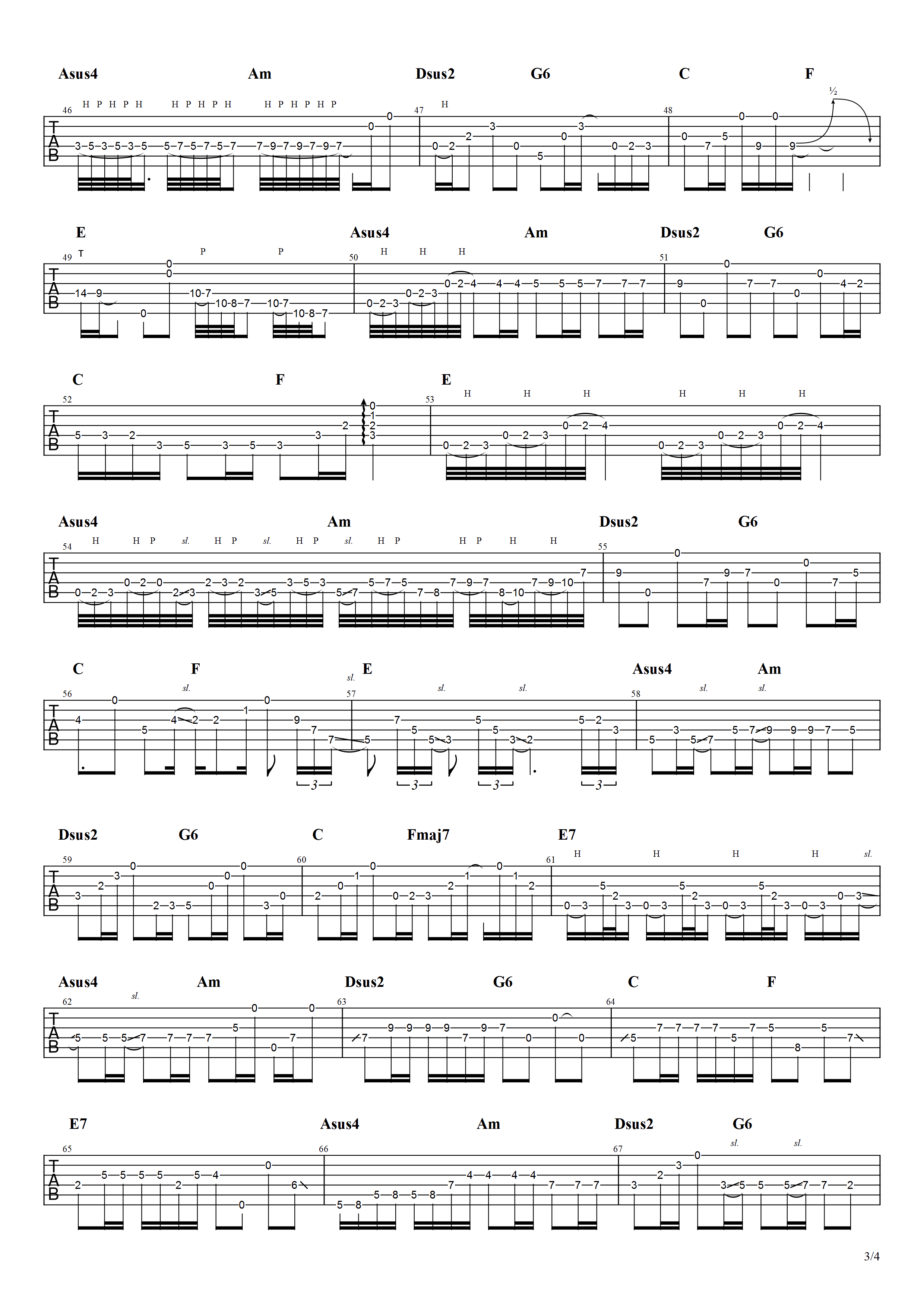 曲谱介绍: Beyond《冷雨夜》吉他独奏谱,共有4张高清图谱。
