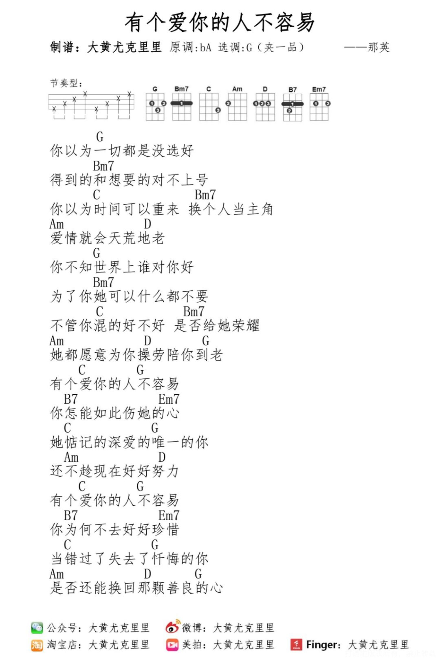 曲谱介绍: 《有个爱你的人不容易》尤克里里谱