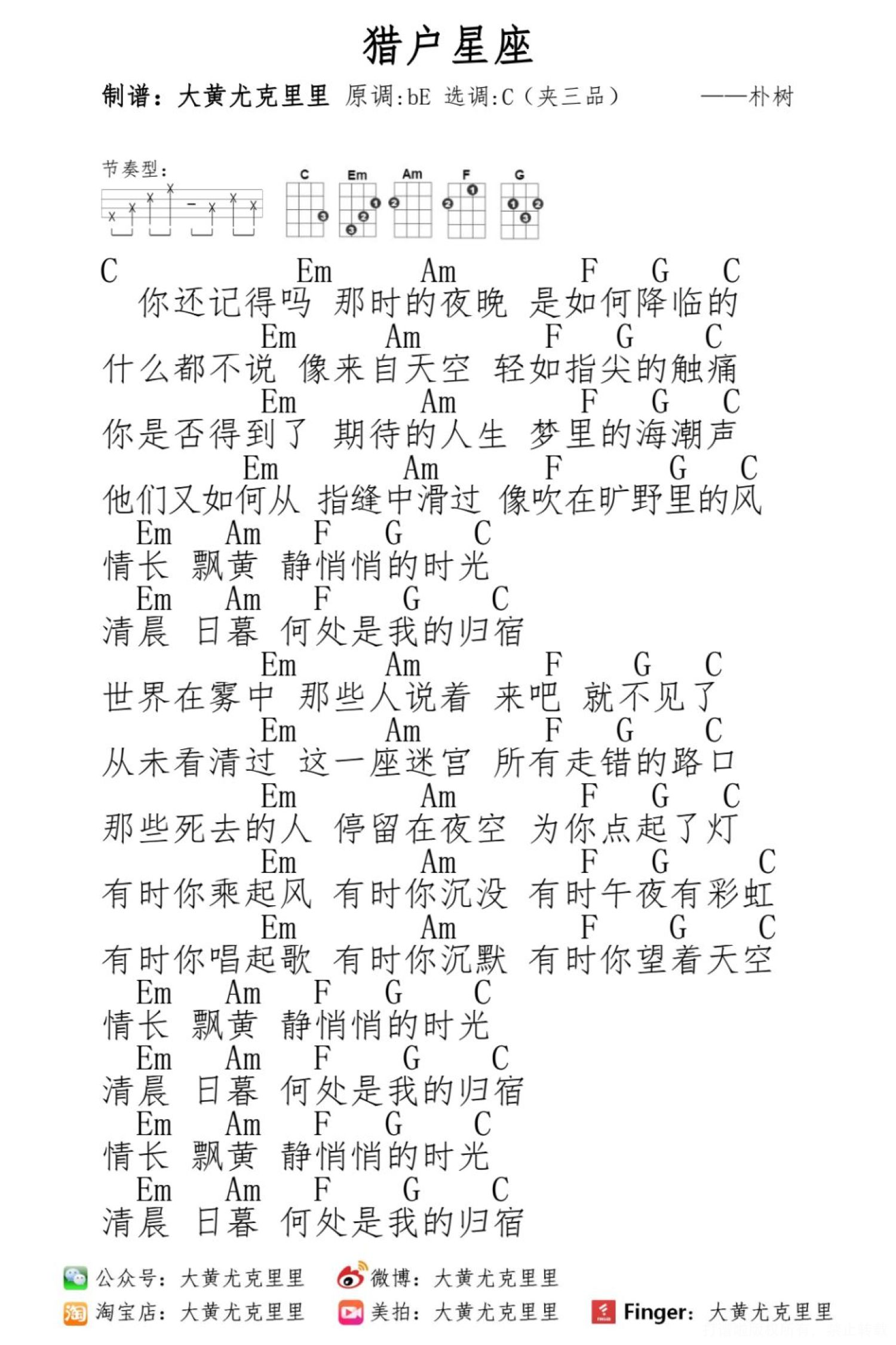 猎户星座尤克里里谱 - 朴树