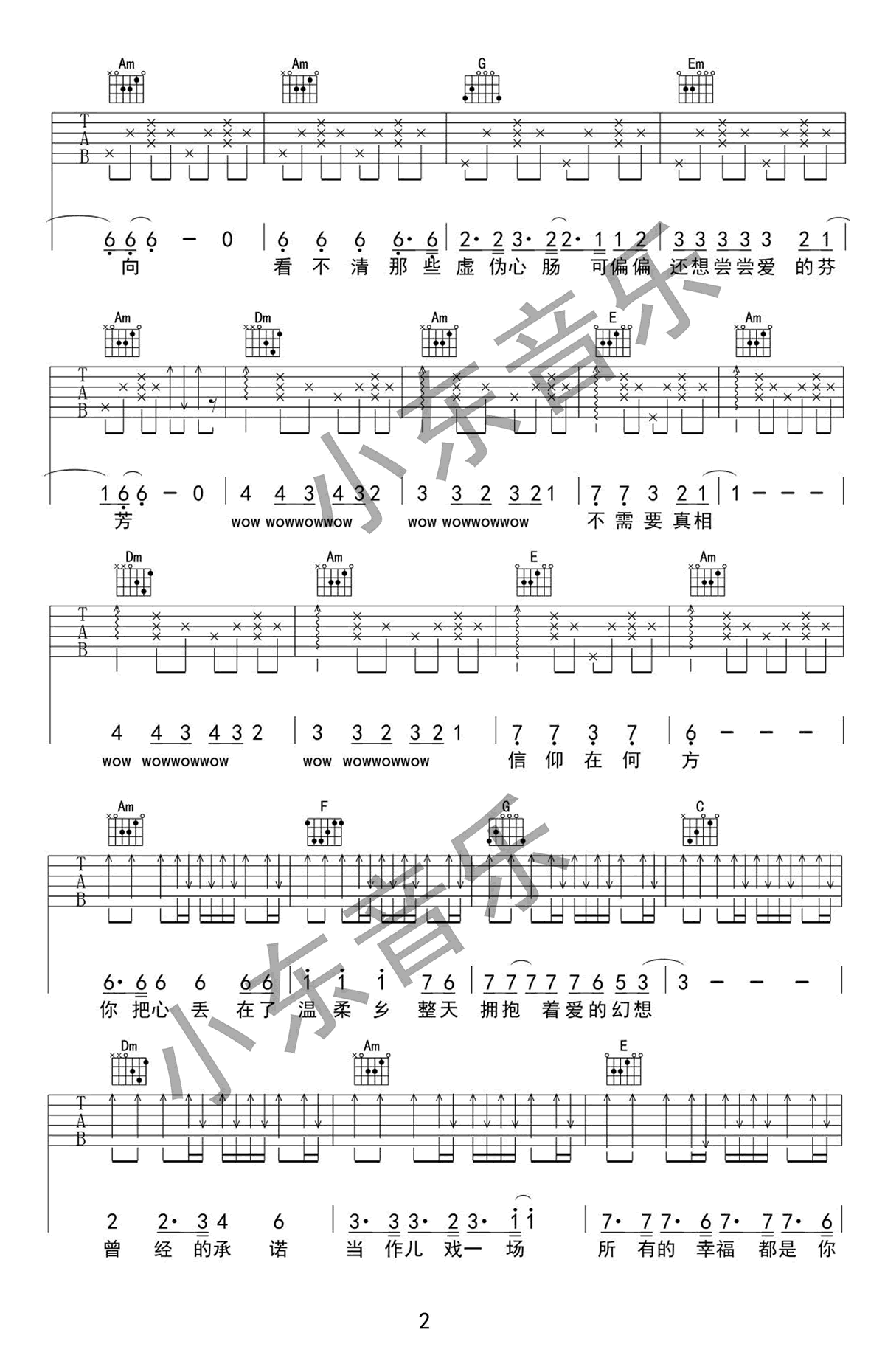 曲谱介绍: 陈雅森《温柔乡》吉他弹唱谱,采用C调指法编配原版,共有3张高清图谱。