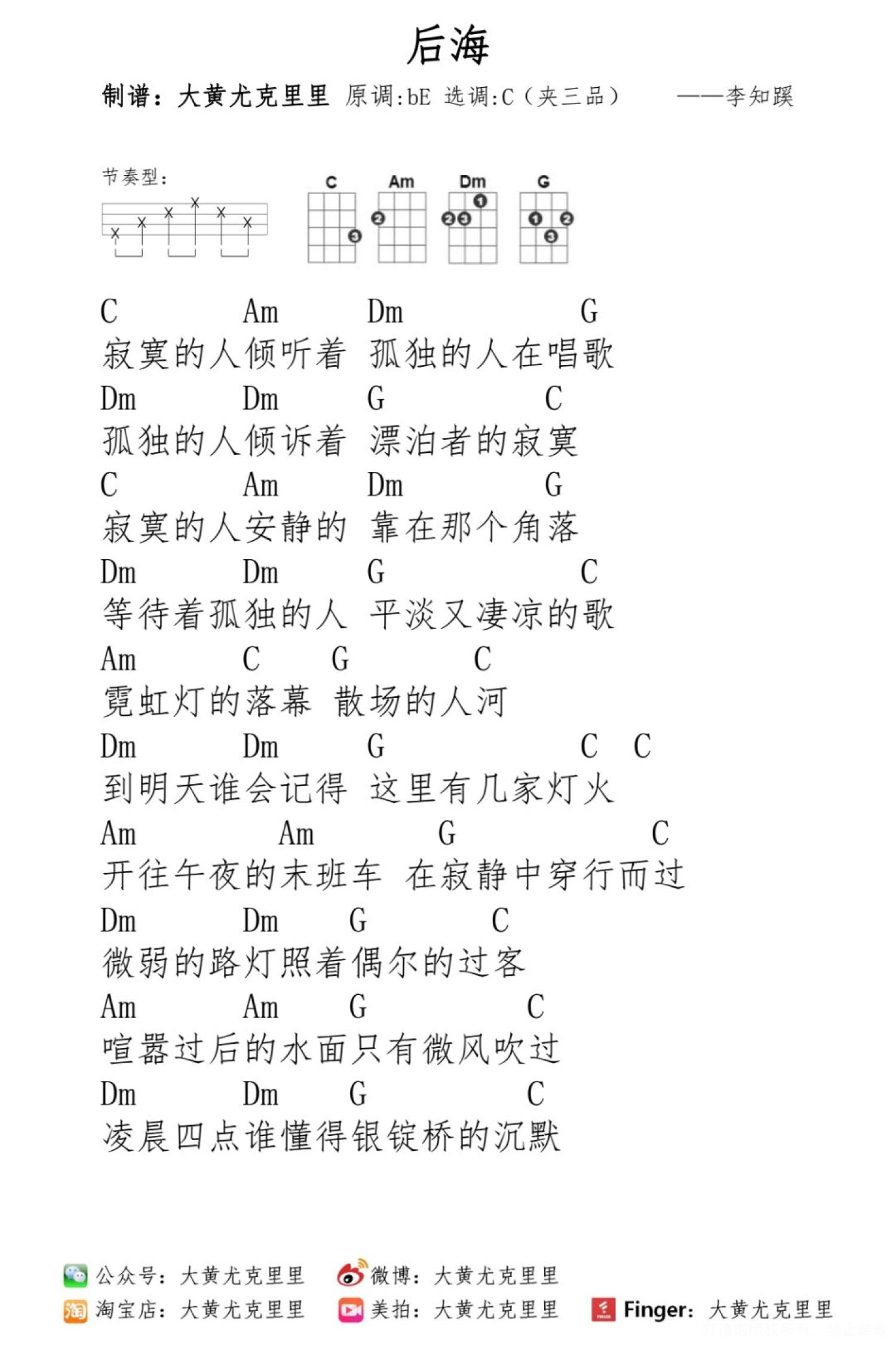 后海尤克里里谱