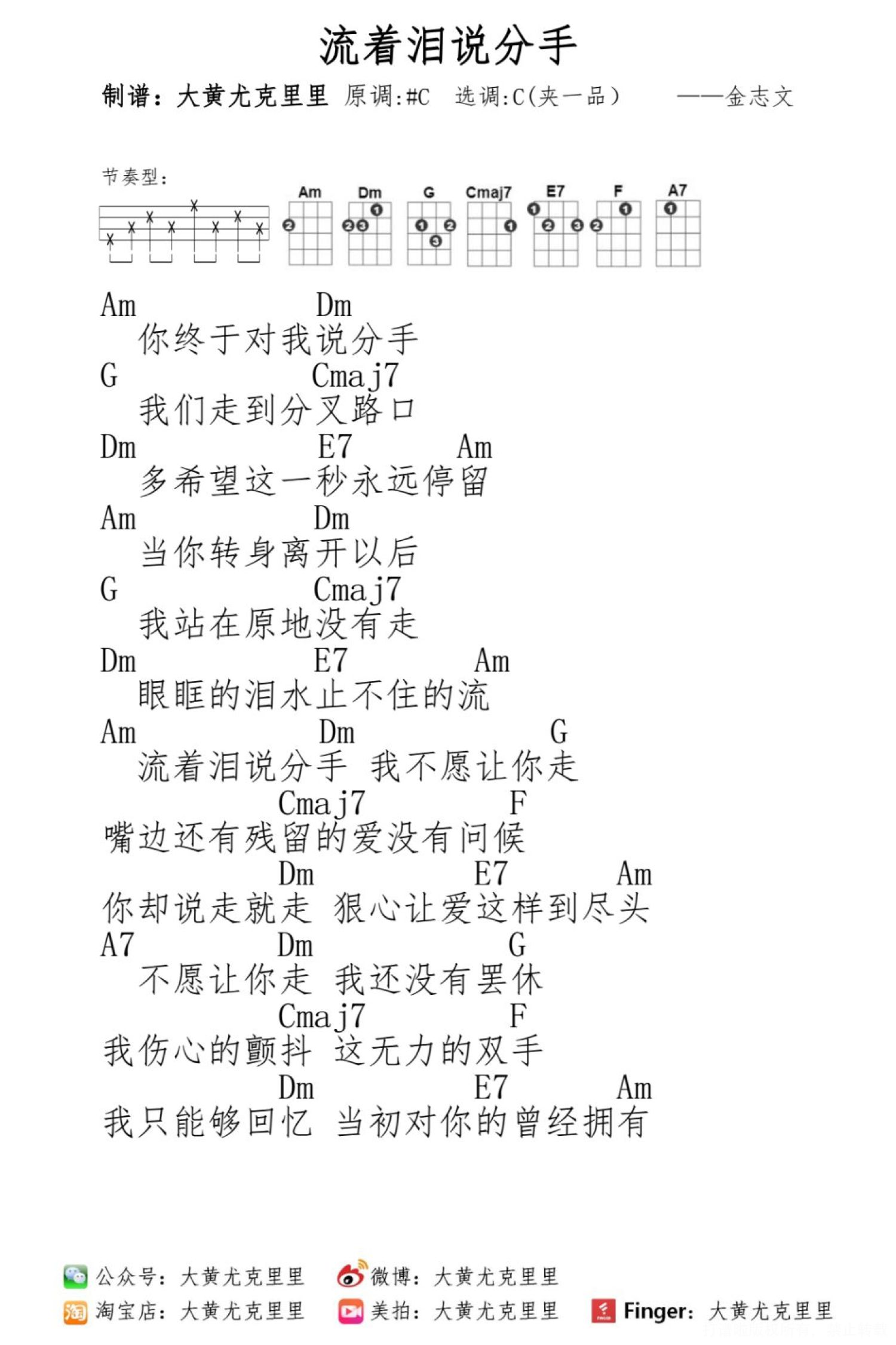 流着泪说分手尤克里里谱 - 金志文