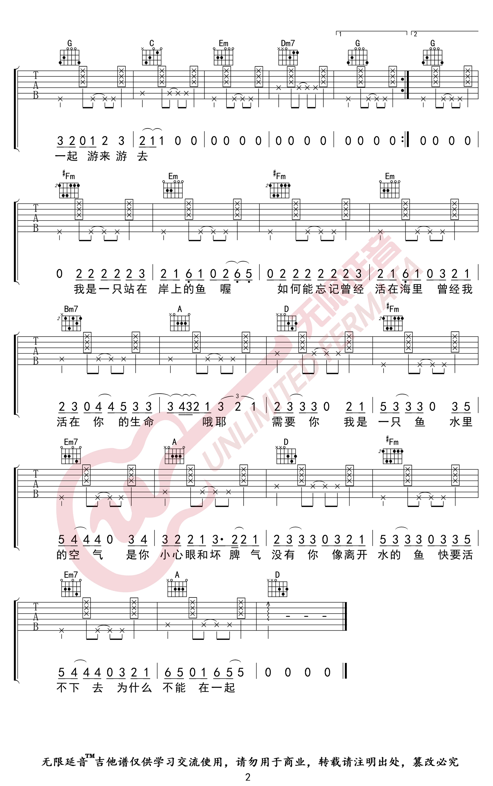 当前位置:琴谱网>吉他弹唱>我是一只鱼