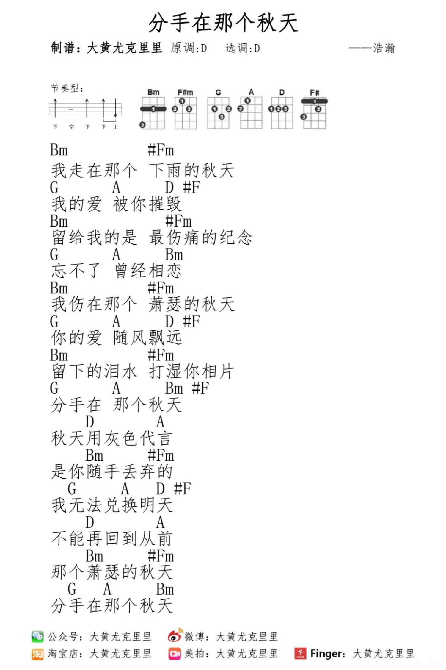 分手在那个秋天尤克里里谱 - 网络歌手