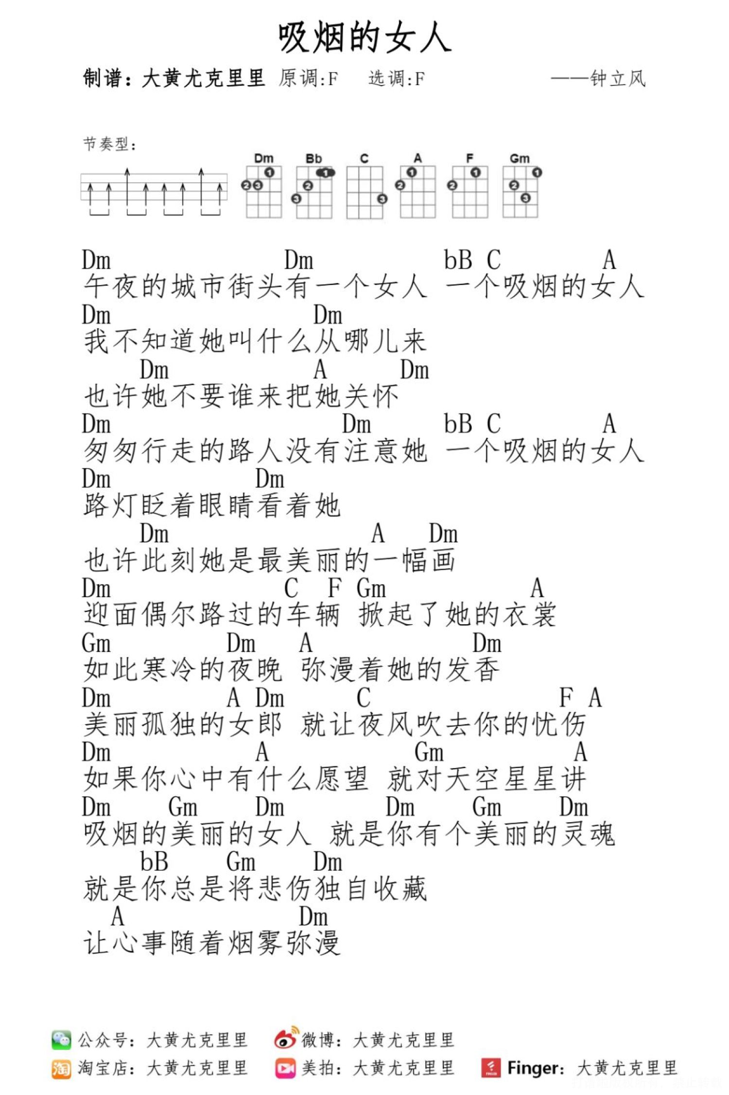 吸烟的女人尤克里里谱