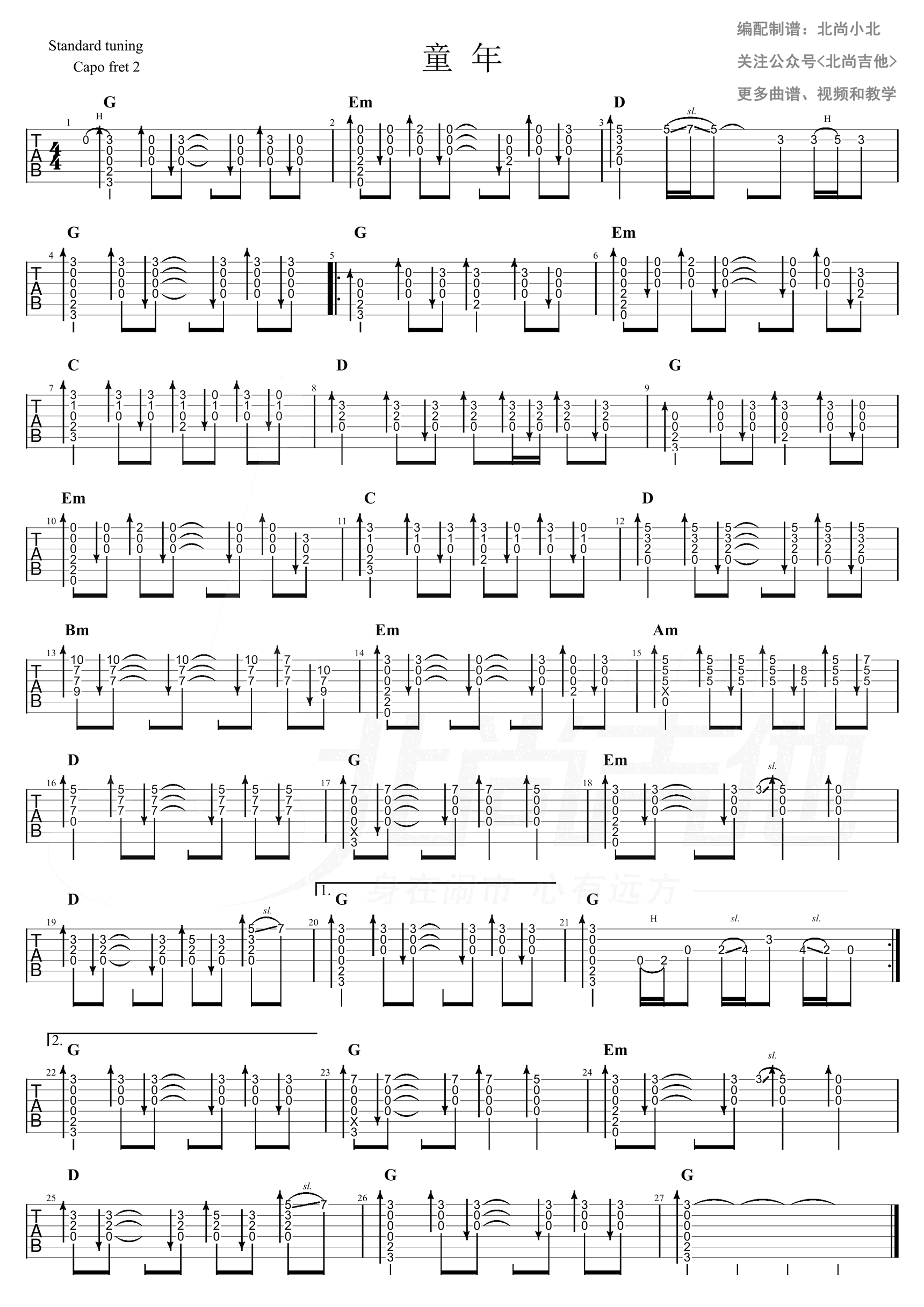 童年吉他谱 - 罗大佑 - 吉他独奏谱