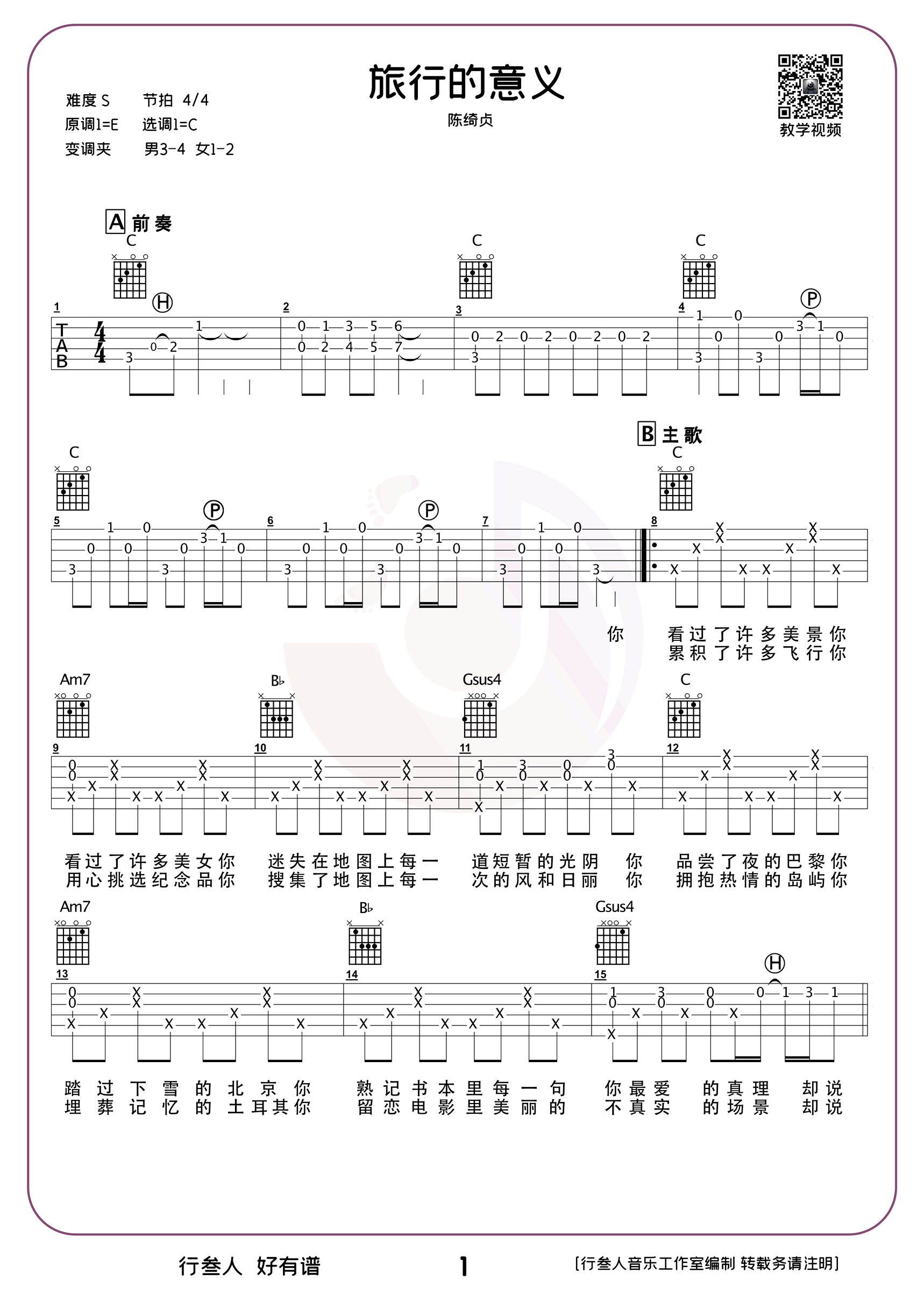旅行的意义吉他谱 - 陈绮贞 - C调吉他弹唱谱
