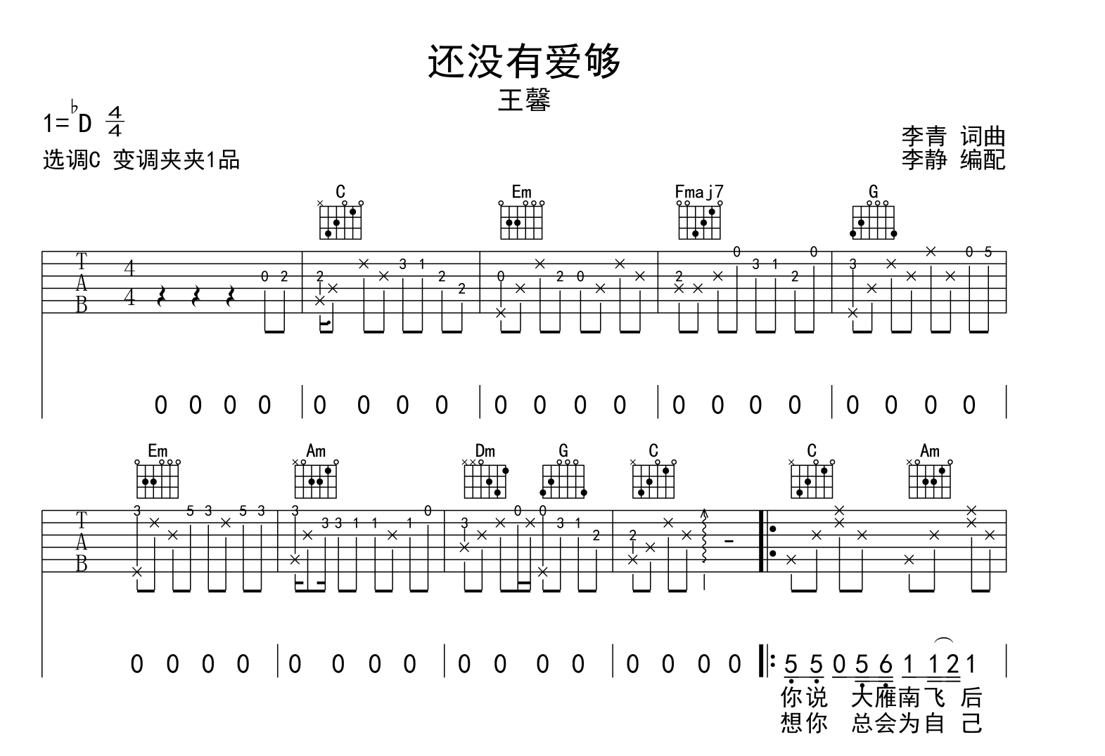 还没有爱够吉他谱 - 王馨 - C调吉他弹唱谱