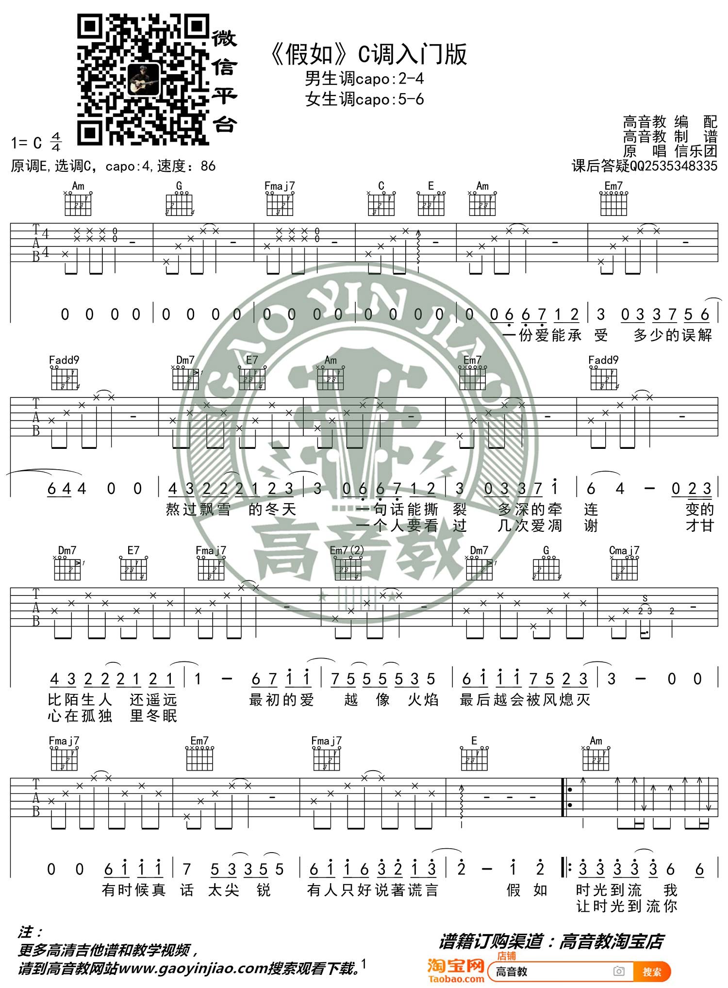 琴谱网为您精心推荐 假如 高清图谱