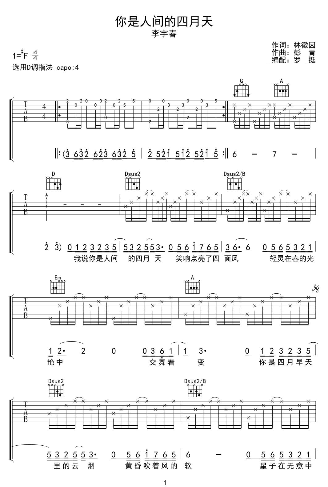 当前位置:琴谱网>吉他弹唱>你是人间的四月天