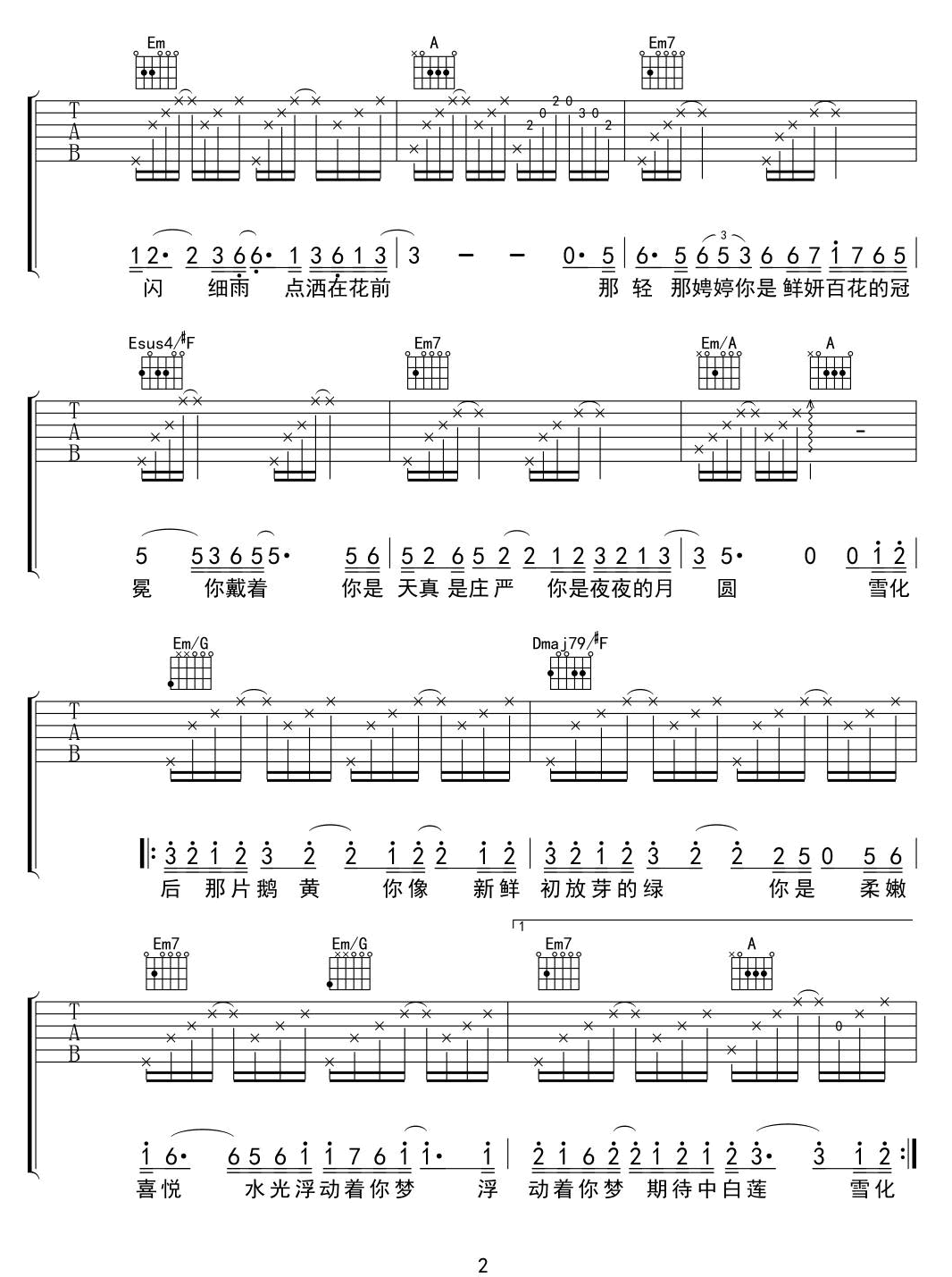 曲谱介绍: 李宇春《你是人间的四月天》吉他弹唱谱,采用C调指法编配原版,共有2张高清图谱,免翻页排版设计。