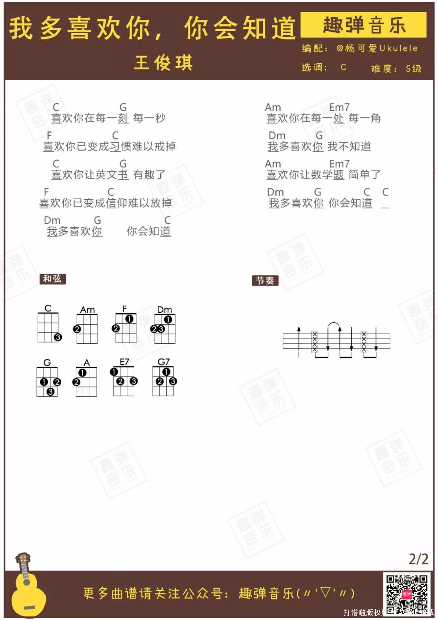 我多喜欢你你会知道尤克里里谱 - 王俊琪