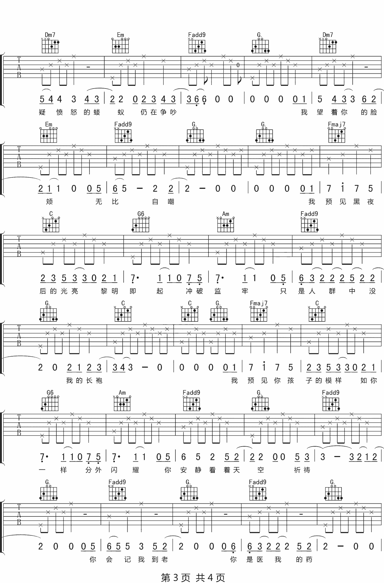 曲谱介绍: 沈以诚《预言家》吉他弹唱谱,采用C调指法编配原版,共有4张高清图谱。
