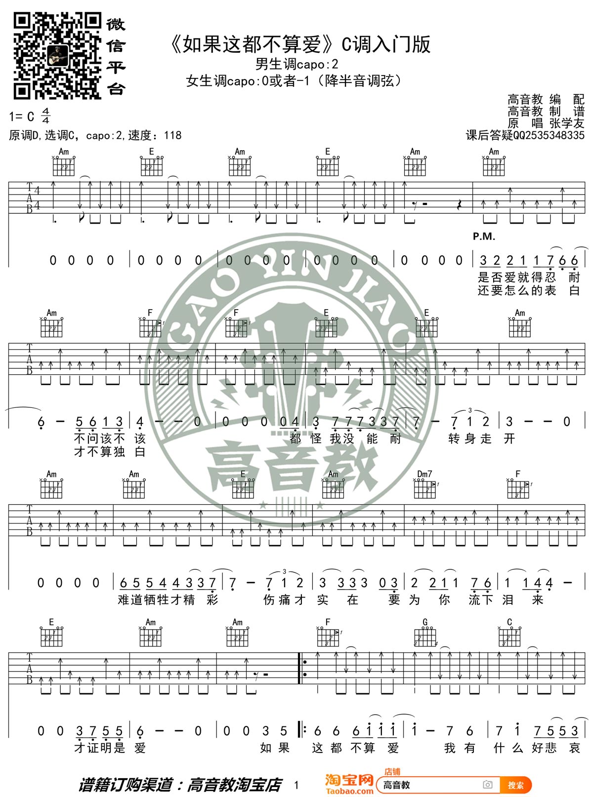 曲谱介绍: 张学友《如果这都不算爱》吉他弹唱谱,采用C调指法编配,共有2张高清图谱,免翻页排版设计。