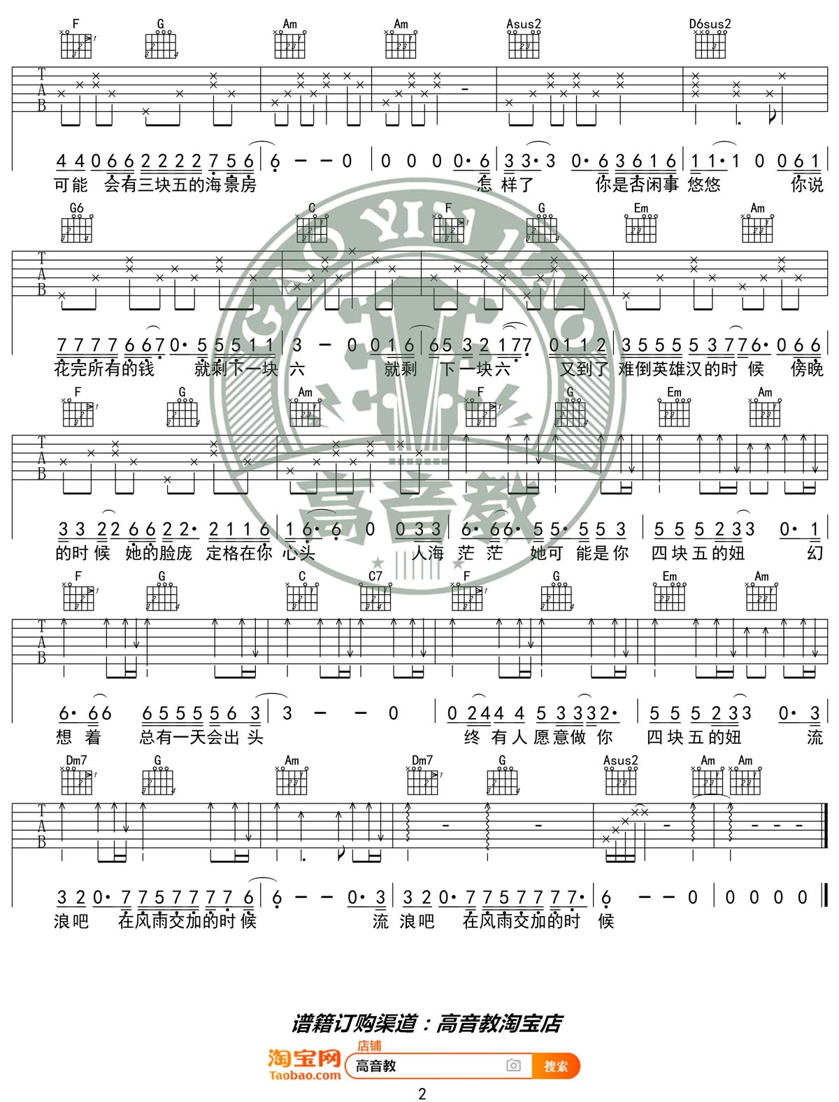 曲谱介绍: 隔壁老樊《四块五》吉他弹唱谱,采用C调指法编配原版,共有2张高清图谱,免翻页排版设计。