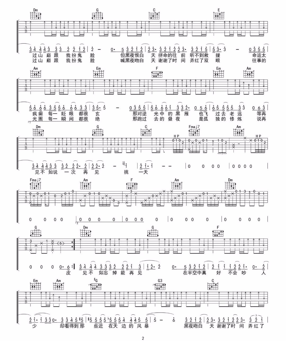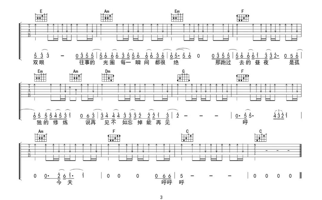 曲谱介绍: 林俊杰《黑夜问白天》吉他弹唱谱,采用C调指法编配原版,共有3张高清图谱。
