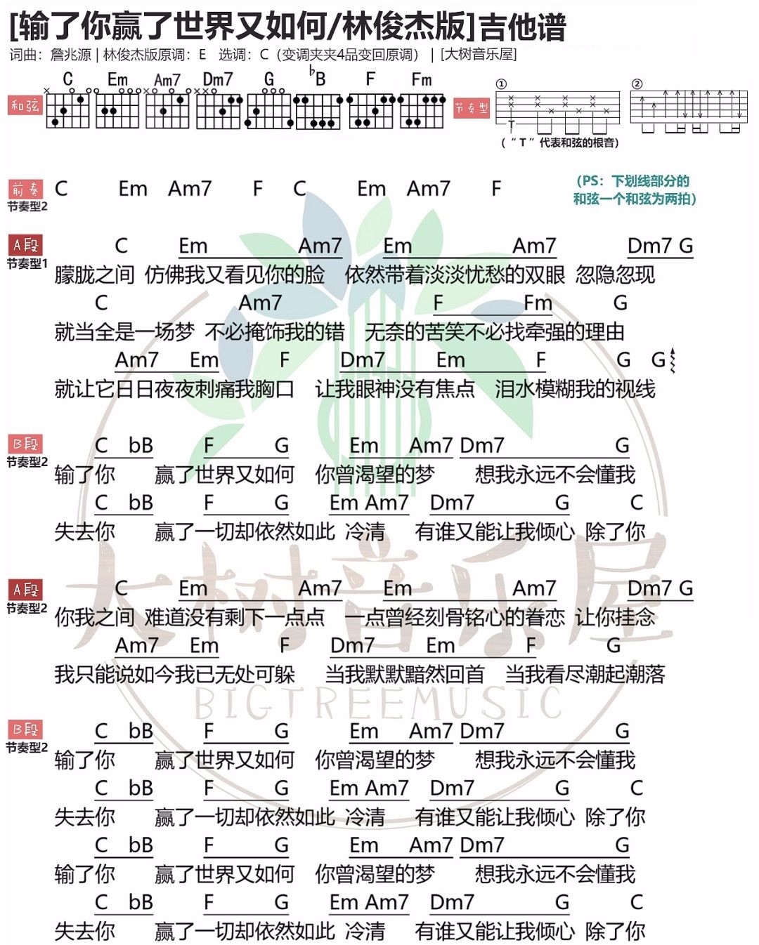 输了你赢了世界又如何吉他谱 - 林俊杰 - C调吉他弹唱谱