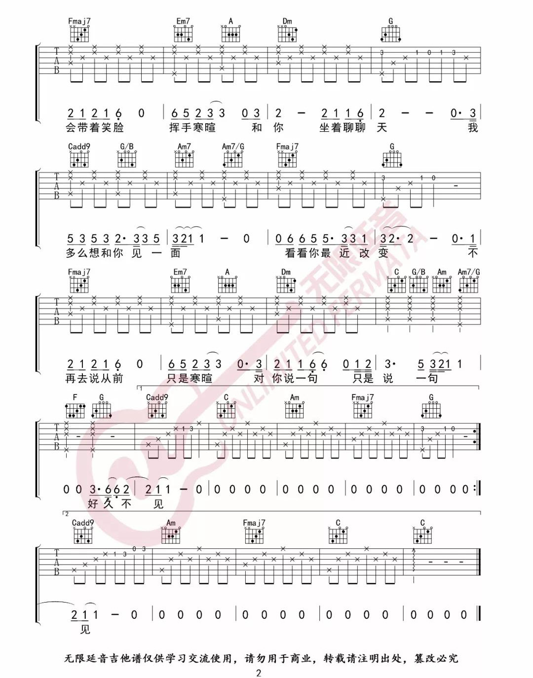 当前位置:琴谱网>吉他弹唱>好久不见