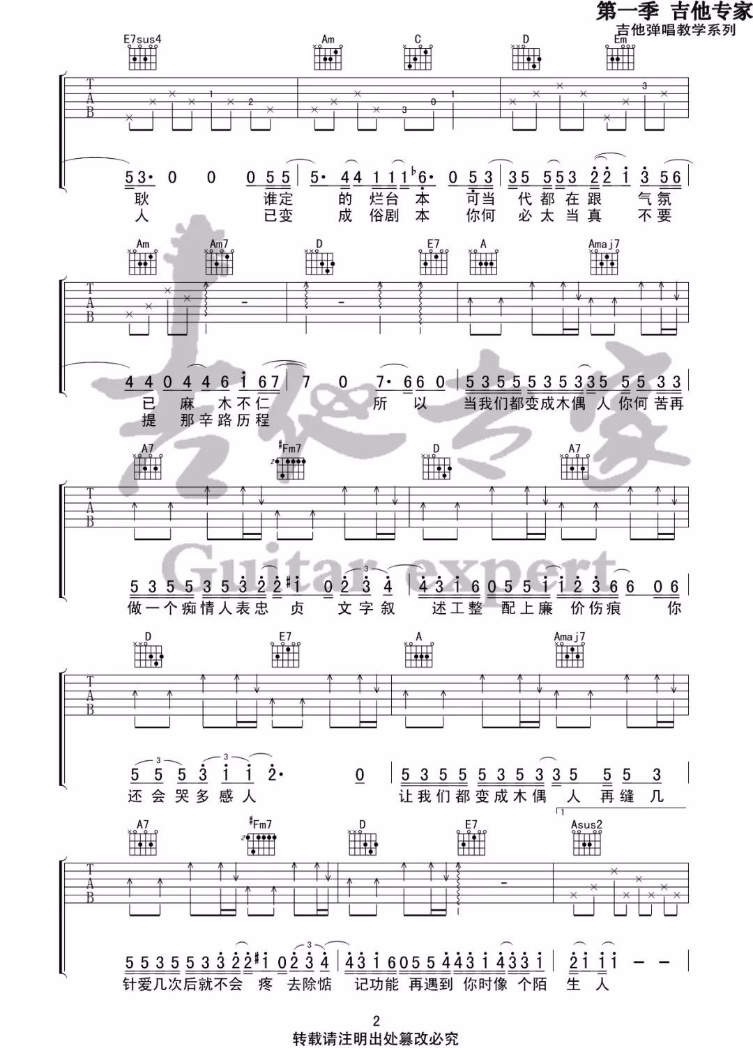 木偶人吉他谱 - 薛之谦 - G调吉他弹唱谱 - 原版