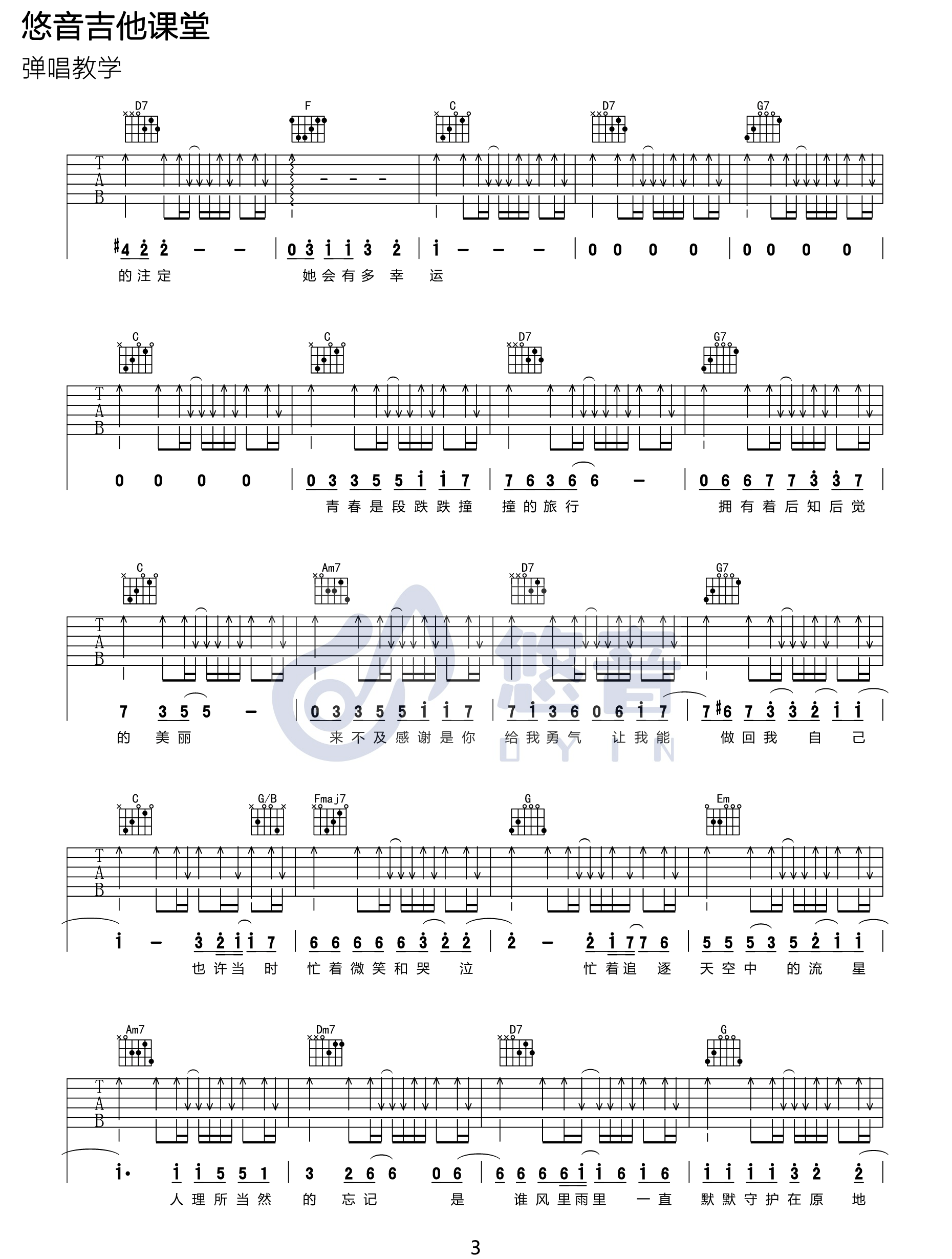 曲谱介绍: 田馥甄《小幸运》吉他弹唱谱,采用C调指法编配原版,共有4张高清图谱。