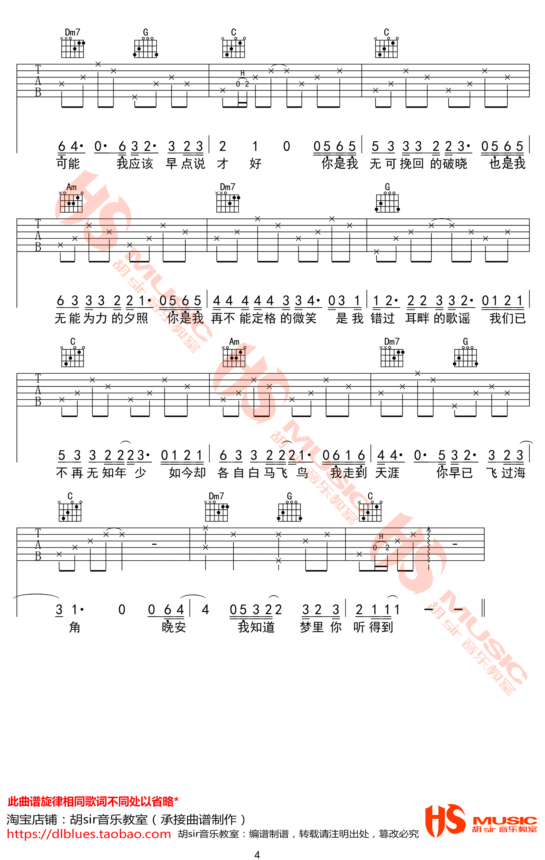 曲谱介绍: 奥博《晚安》吉他弹唱谱,采用C调指法编配,共有4张高清图谱。