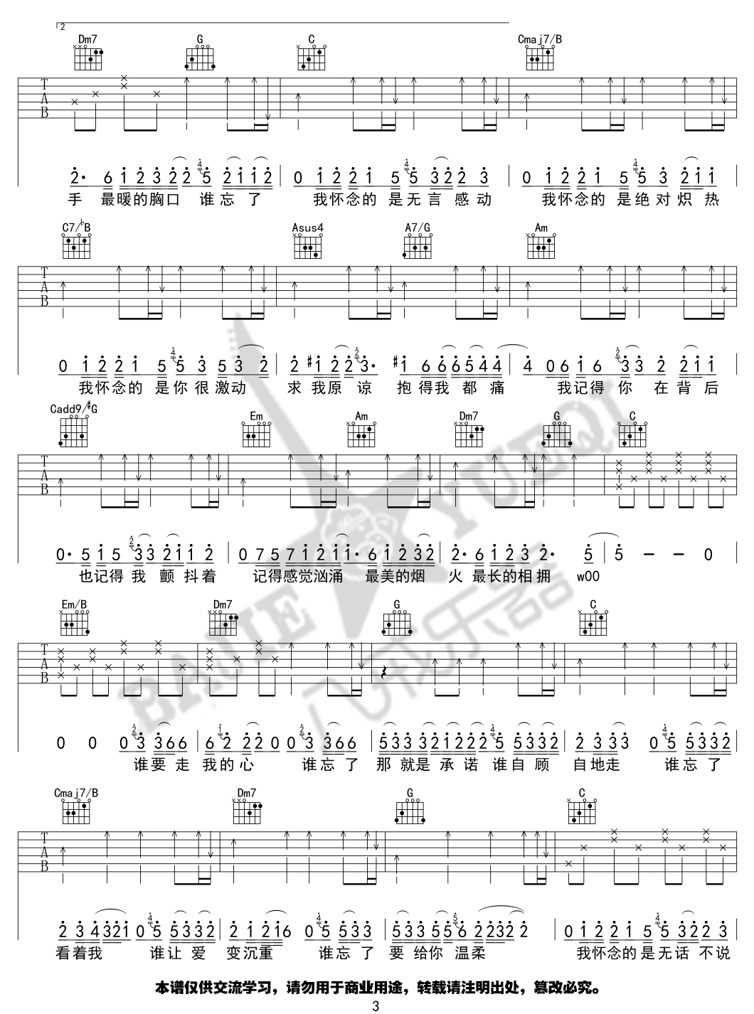 曲谱介绍: 孙燕姿《我怀念的》吉他弹唱谱,采用C调指法编配原版,共有3张高清图谱。