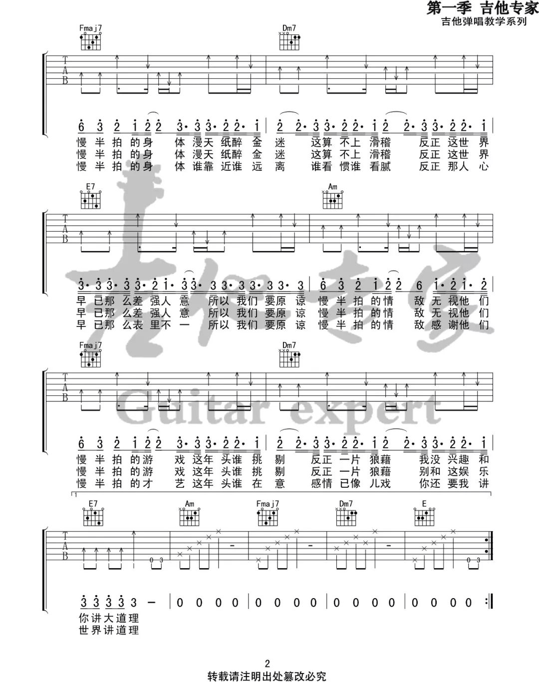 当前位置:琴谱网>吉他弹唱>慢半拍