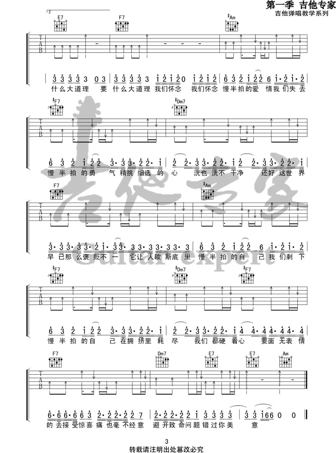 曲谱介绍: 薛之谦《慢半拍》吉他弹唱谱,采用C调指法编配原版,共有3张高清图谱。