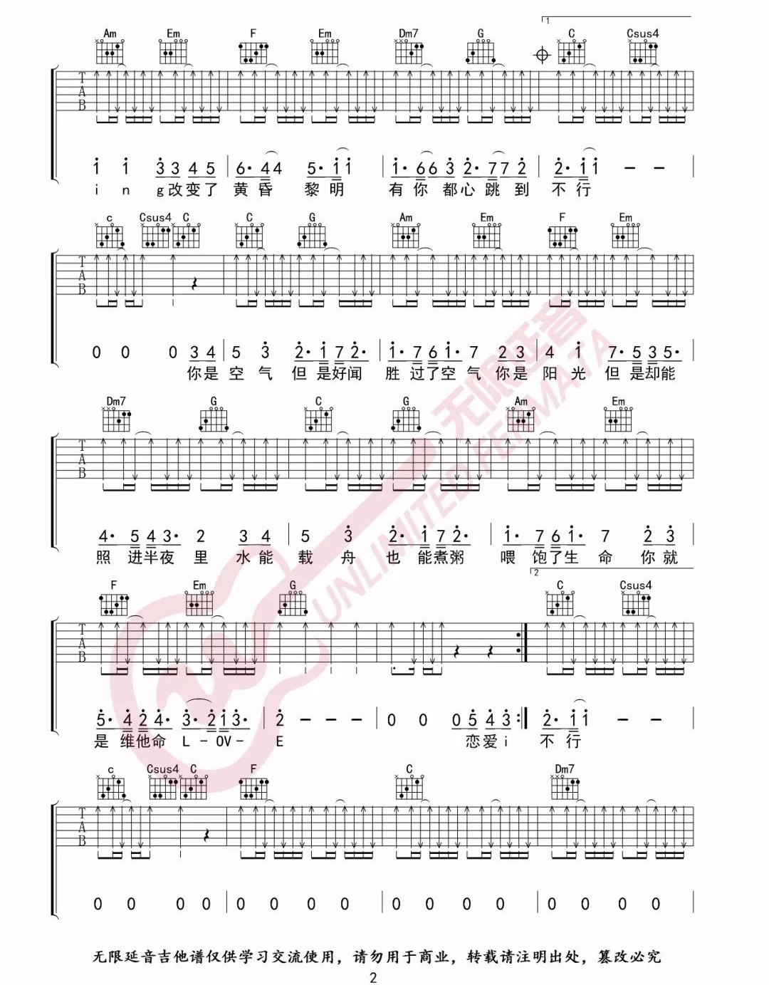 曲谱介绍: 五月天《恋爱ING》吉他弹唱谱,采用C调指法编配原版,共有3张高清图谱。