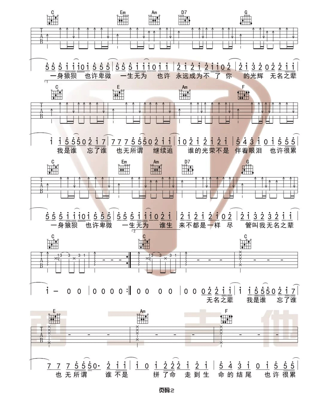 无名之辈吉他谱 - 陈雪燃 - C调吉他弹唱谱 - 原版