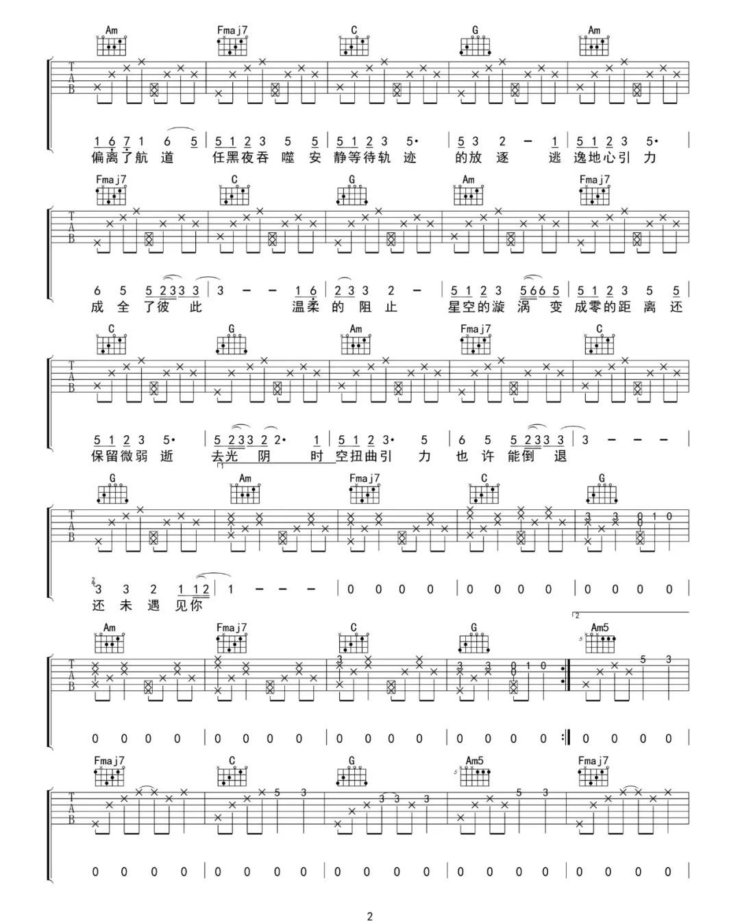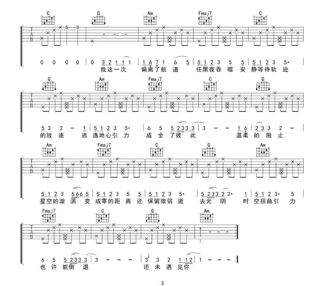 曲谱介绍: 小星星Aurora《坠落星空》吉他弹唱谱,采用C调指法编配原版,共有3张高清图谱。