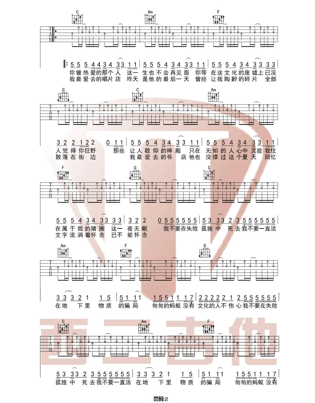 曲谱介绍: 新裤子乐队《没有理想的人不伤心》吉他弹唱谱,采用C调指法编配原版,共有3张高清图谱。