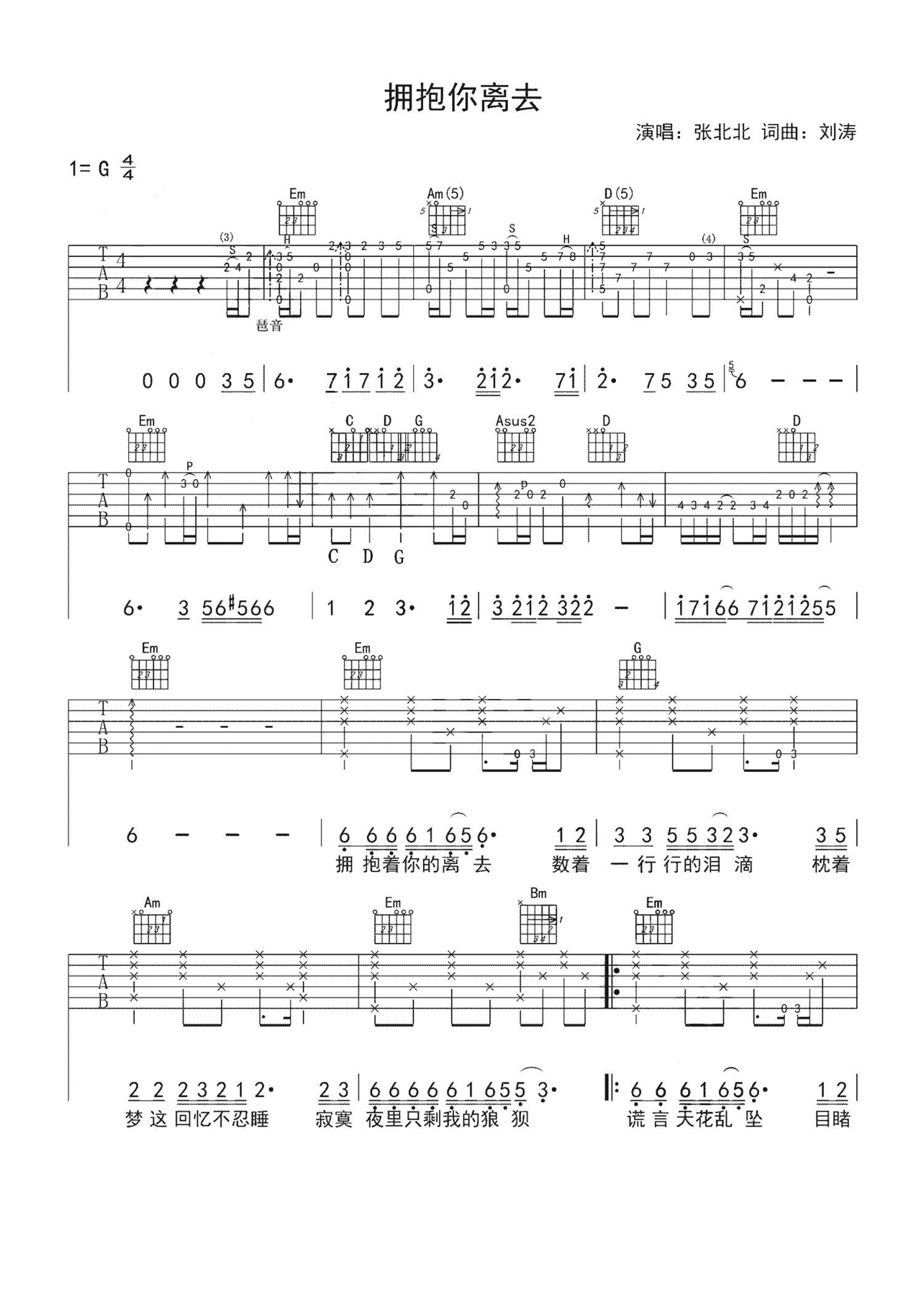 拥抱你离去吉他谱 - 张北北 - G调吉他弹唱谱