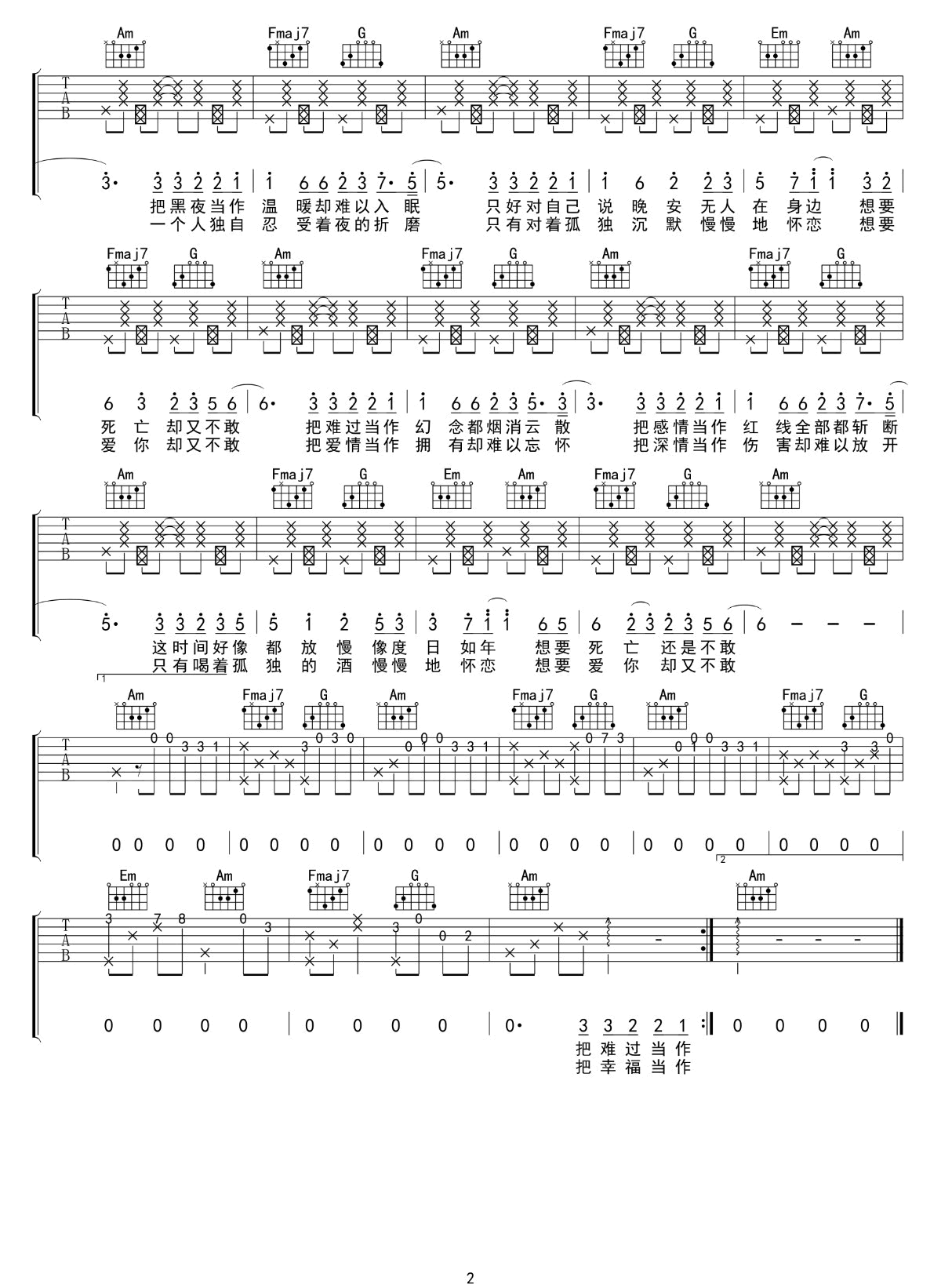 当前位置:琴谱网>吉他弹唱>想死却又不敢