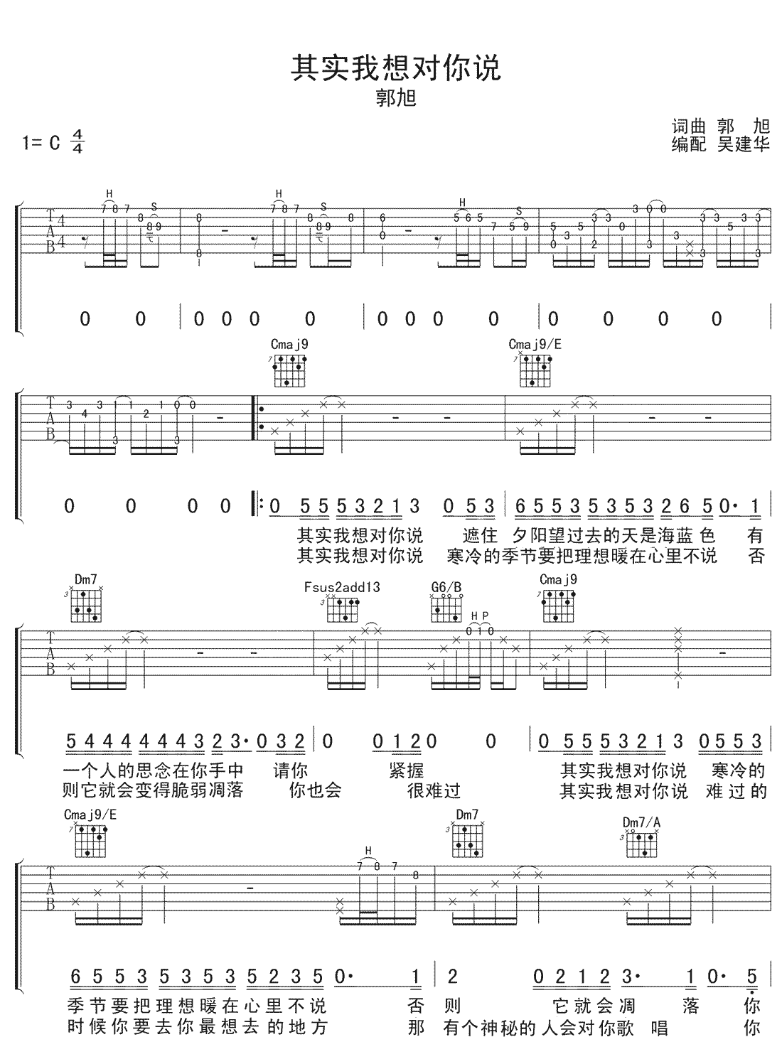 曲谱介绍: 郭旭《其实我想对你说》吉他弹唱谱,采用C调指法编配原版,共有2张高清图谱,免翻页排版设计。