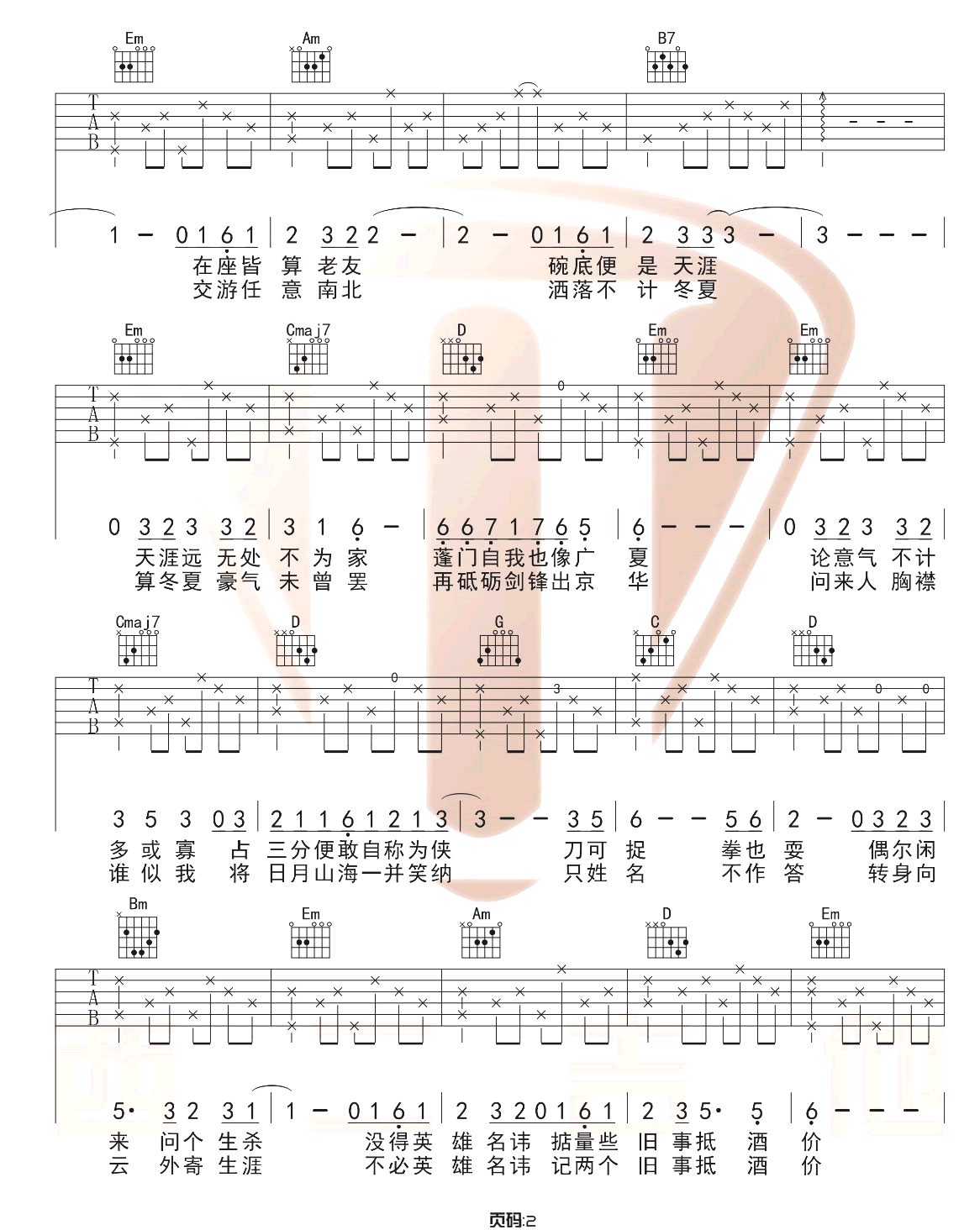 曲谱介绍: 萧忆情《不谓侠》吉他弹唱谱,采用G调指法编配原版,共有4张高清图谱。
