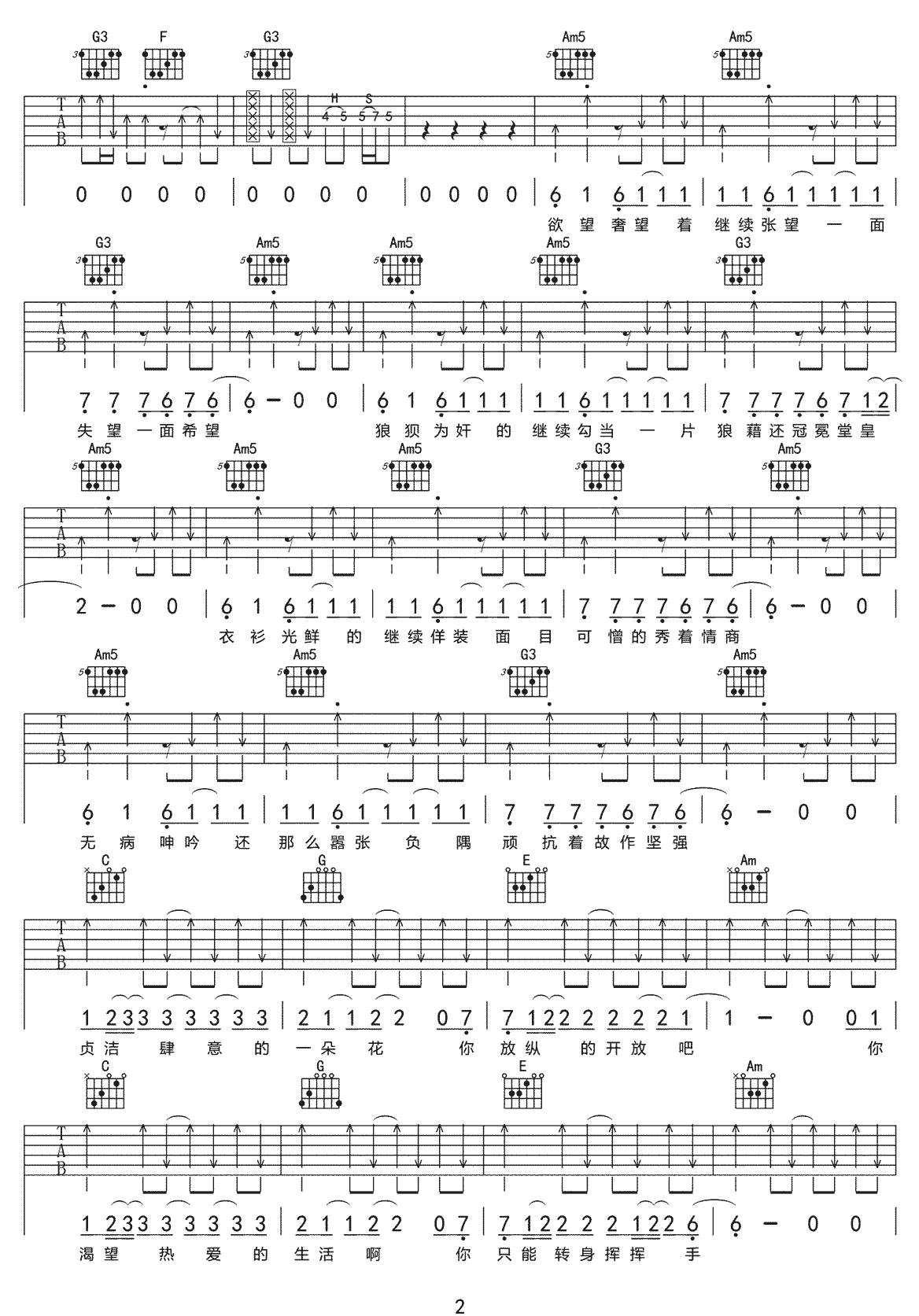 曲谱介绍: 赵照《过期荷尔蒙》吉他弹唱谱,采用C调指法编配原版,共有5张高清图谱。
