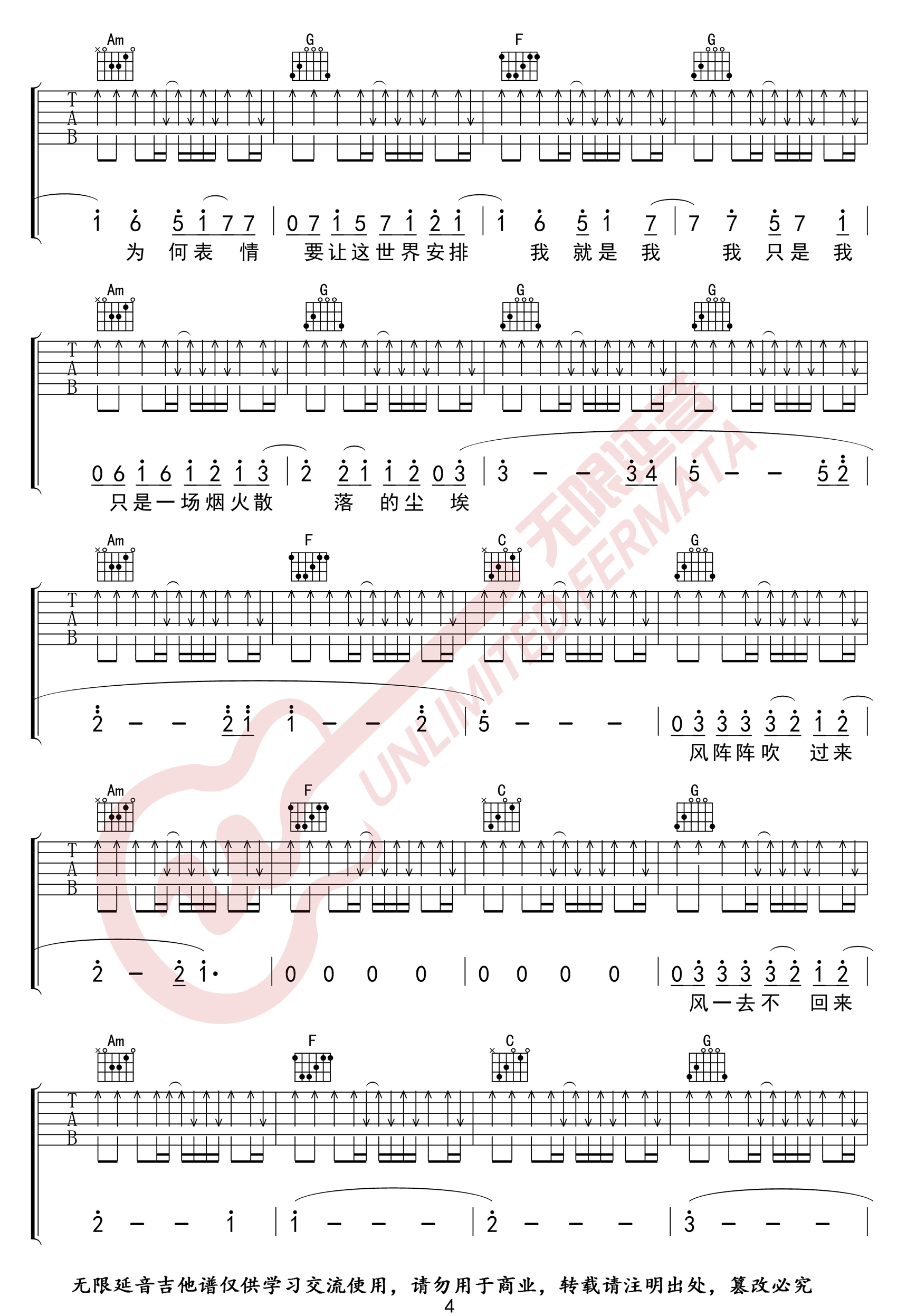 曲谱介绍: 华晨宇《烟火里的尘埃》吉他弹唱谱,采用C调指法编配,共有5张高清图谱。