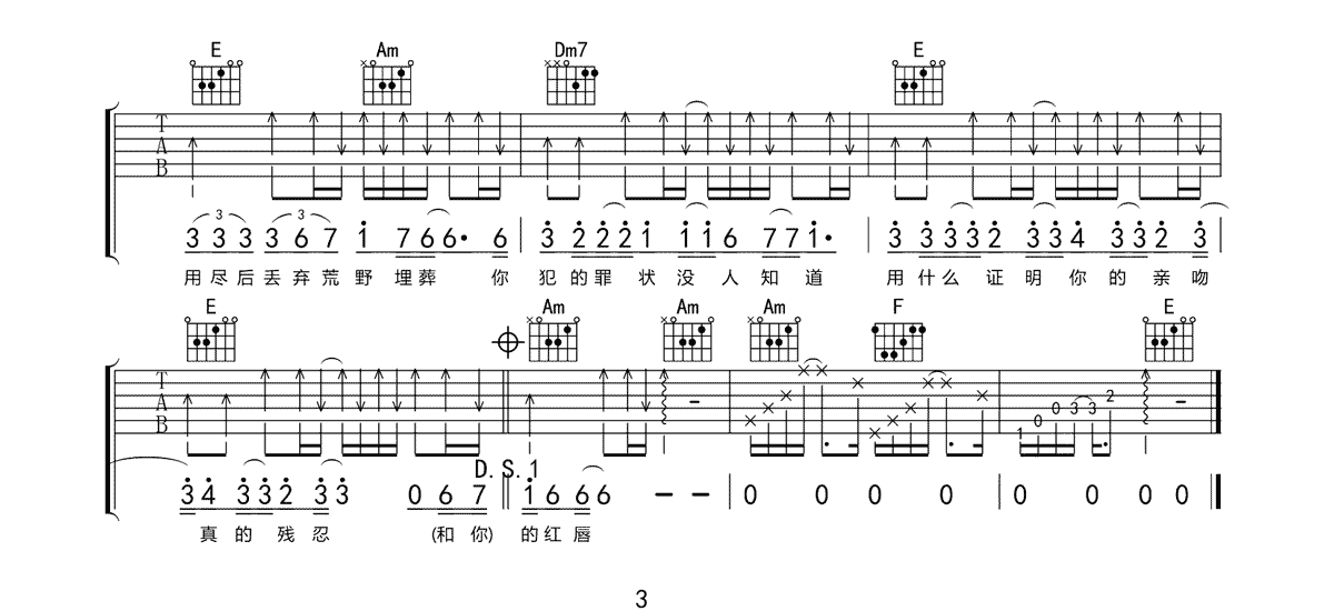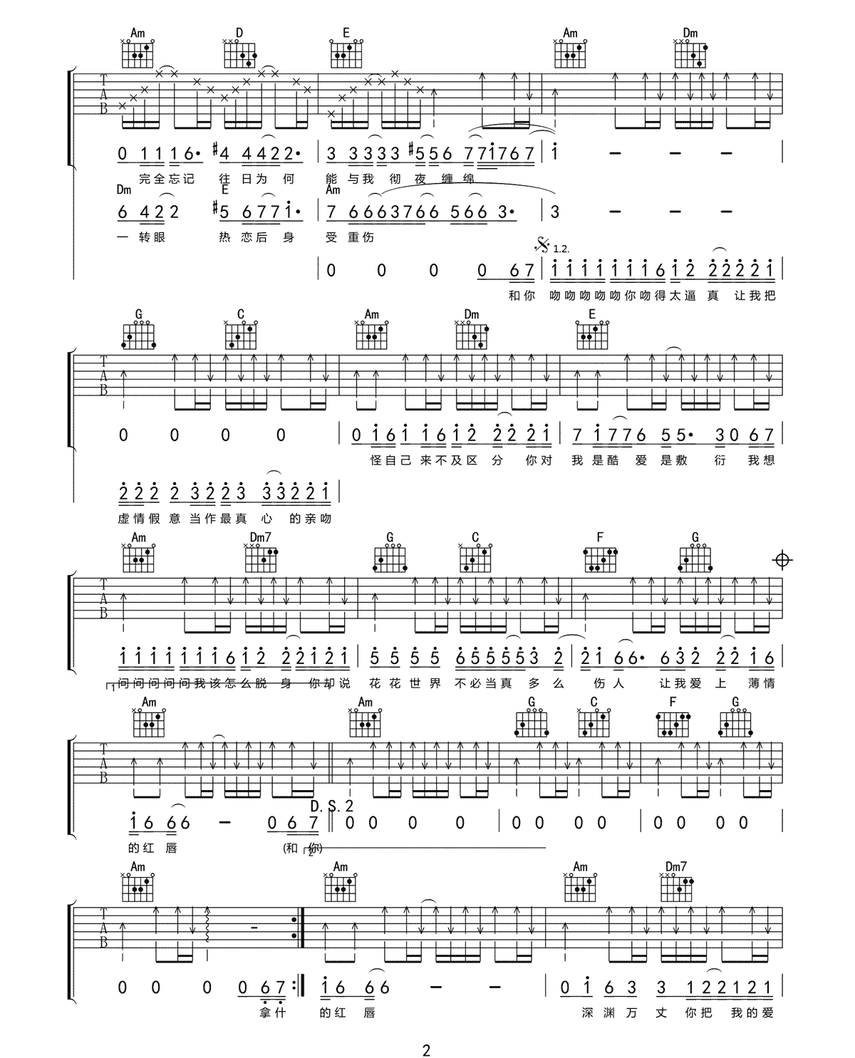 曲谱介绍: 张敬轩《吻得太逼真》吉他弹唱谱,采用C调指法编配原版,共有3张高清图谱。