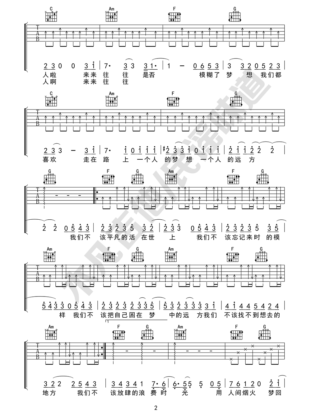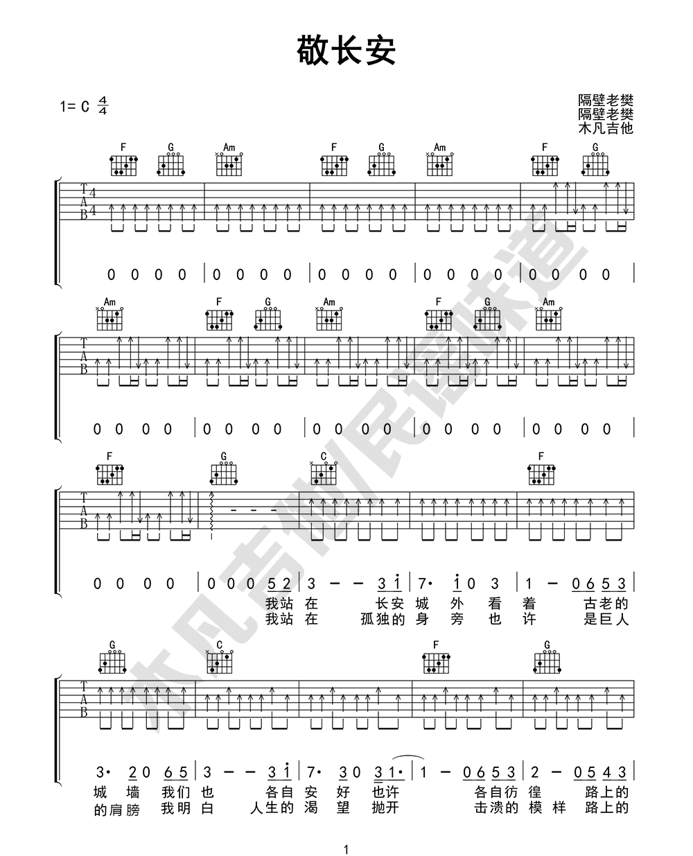 曲谱介绍: 隔壁老樊《敬长安》吉他弹唱谱,采用C调指法编配原版,共有3张高清图谱。