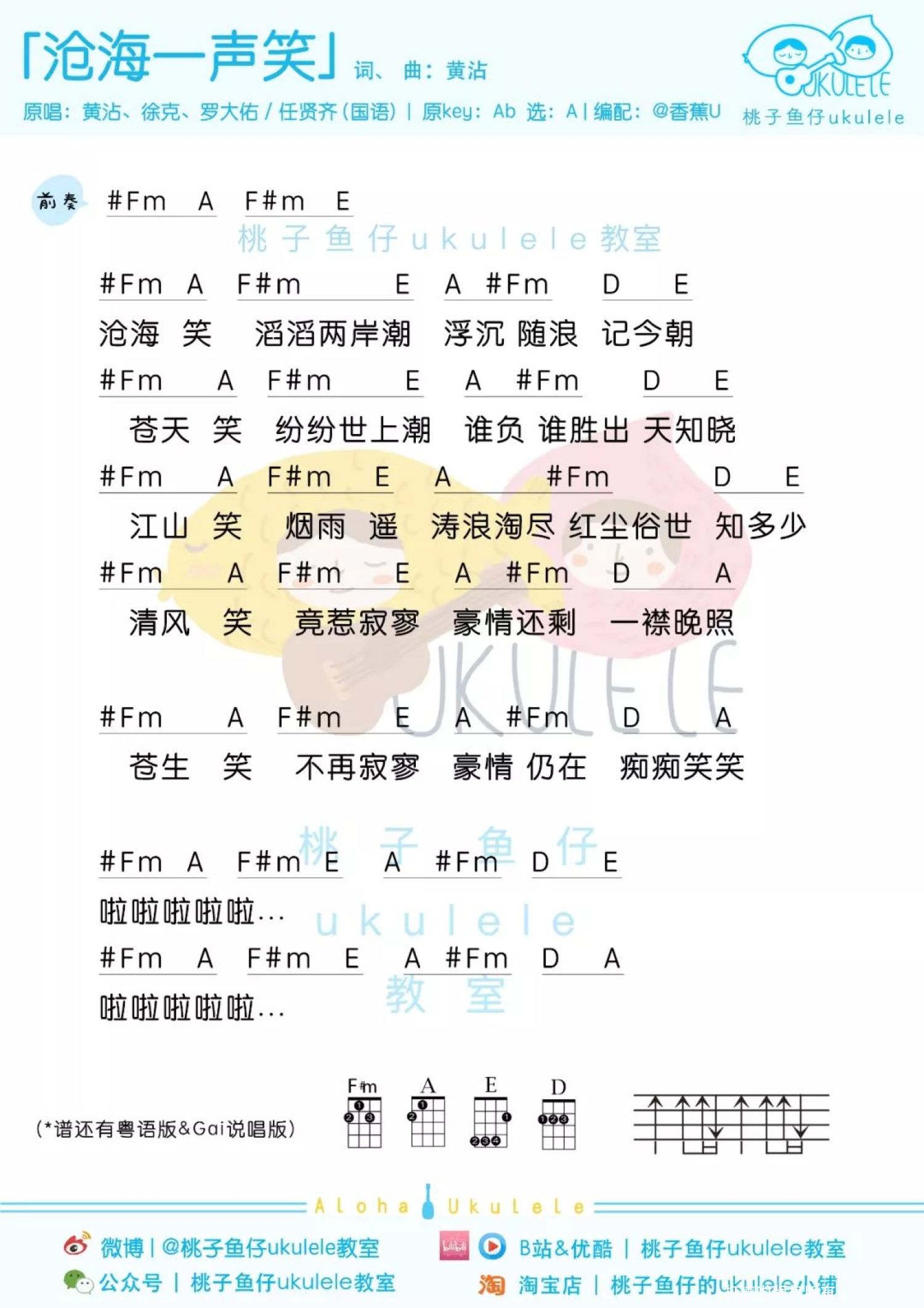 沧海一声笑尤克里里谱 - 黄霑
