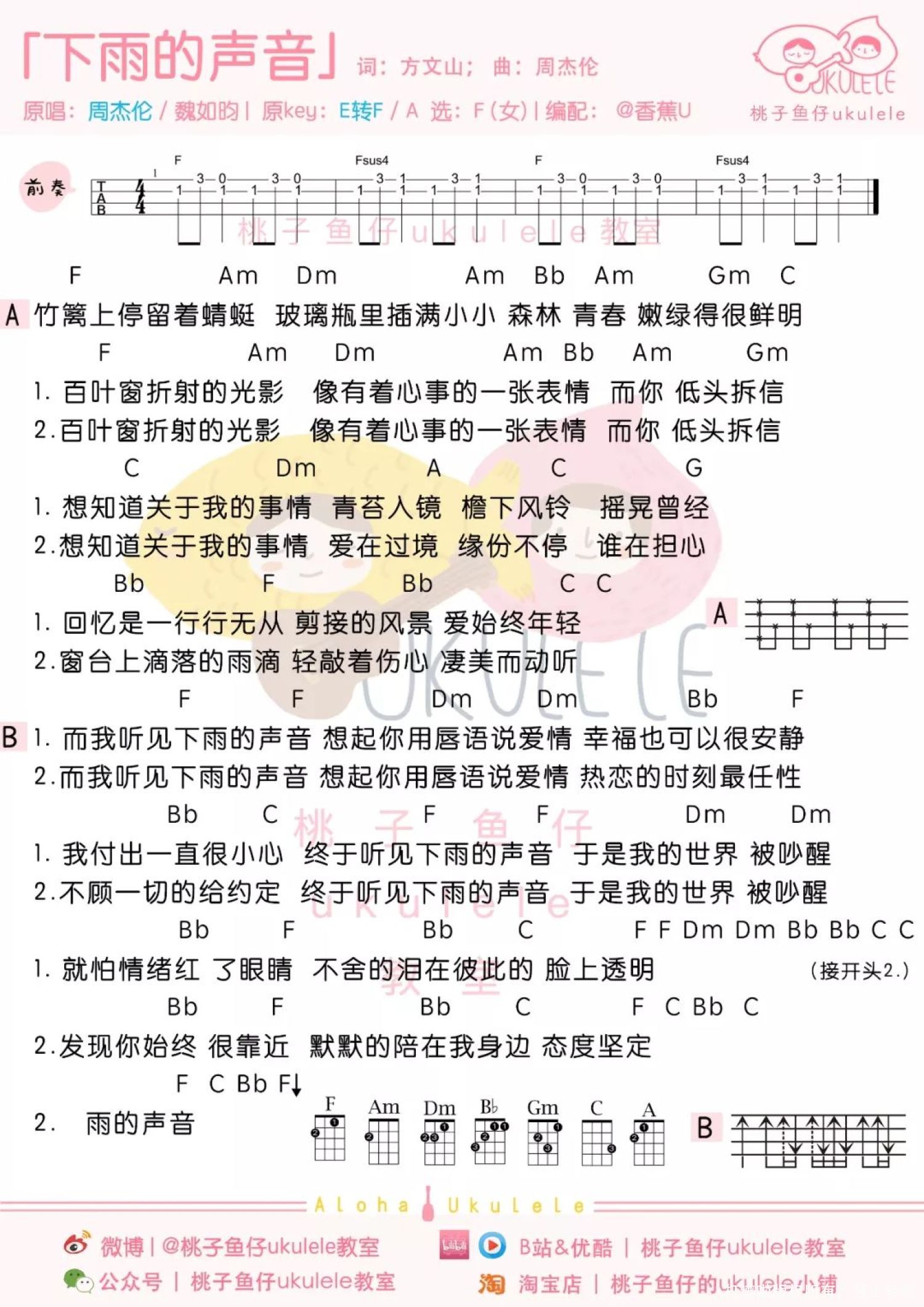 听见下雨的声音尤克里里谱 - 关诗敏/魏如昀