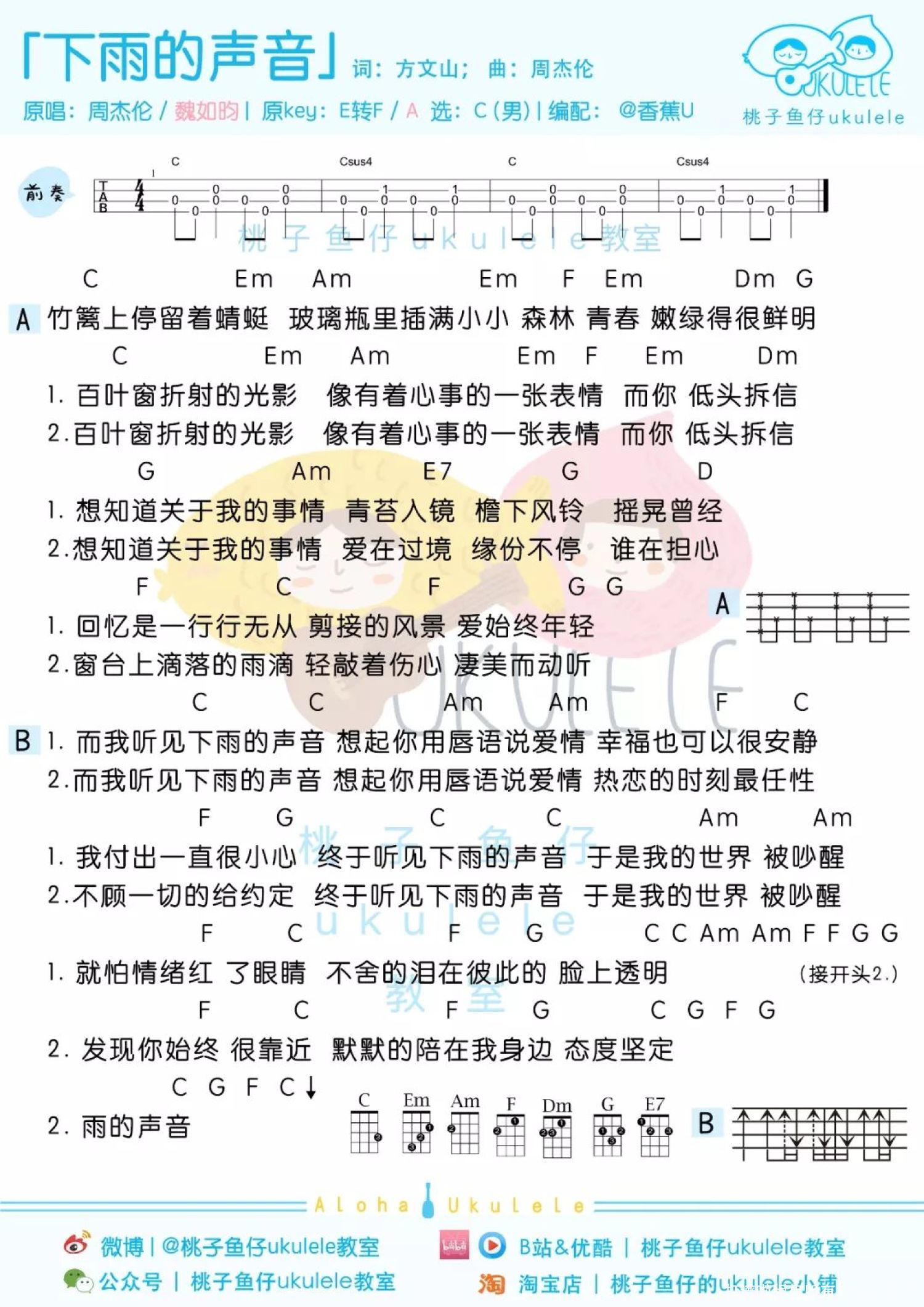 当前位置:琴谱网>尤克里里>听见下雨的声音