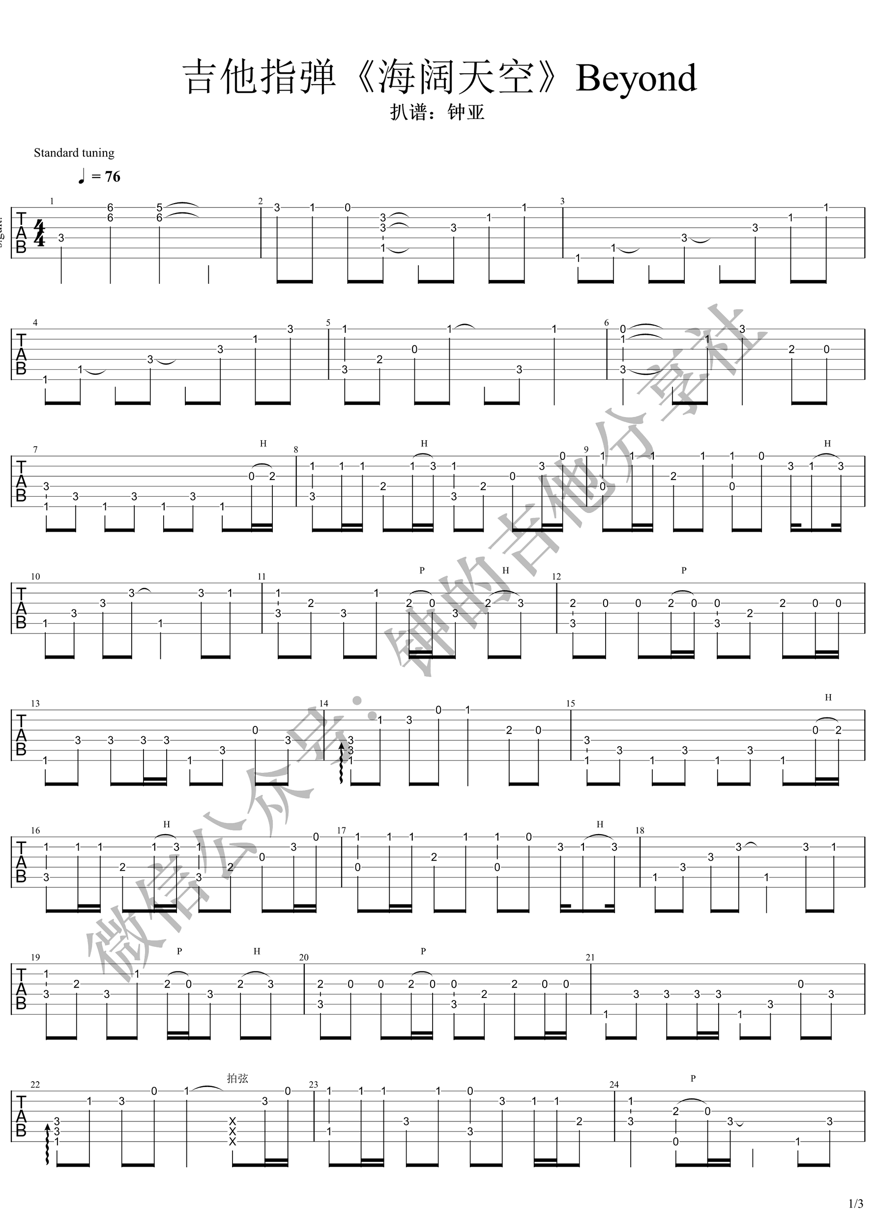 曲谱介绍: Beyond《海阔天空》吉他独奏谱,共有3张高清图谱。
